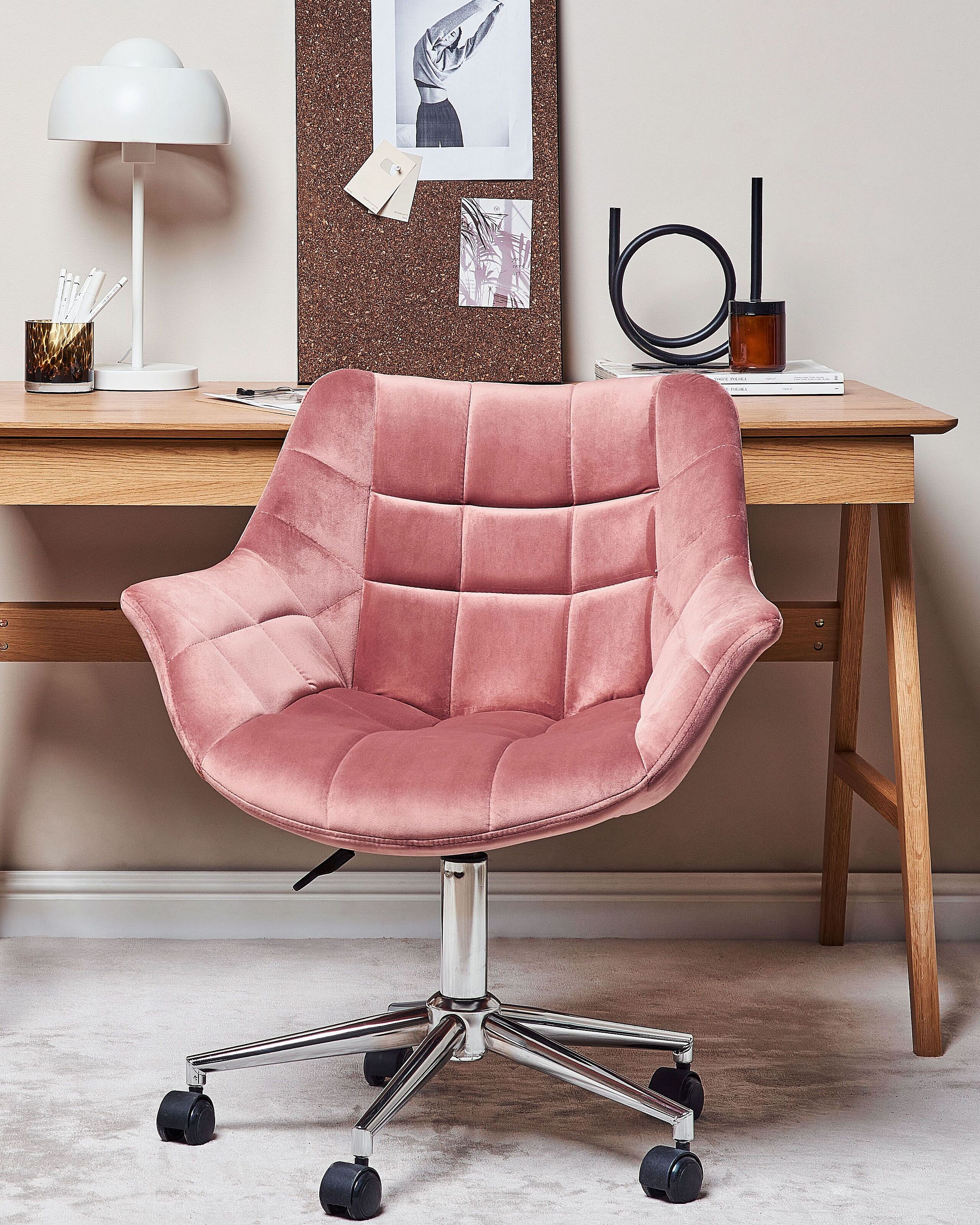 Conteneur de bureau mobile en chêne doré avec tiroirs sur roulettes.