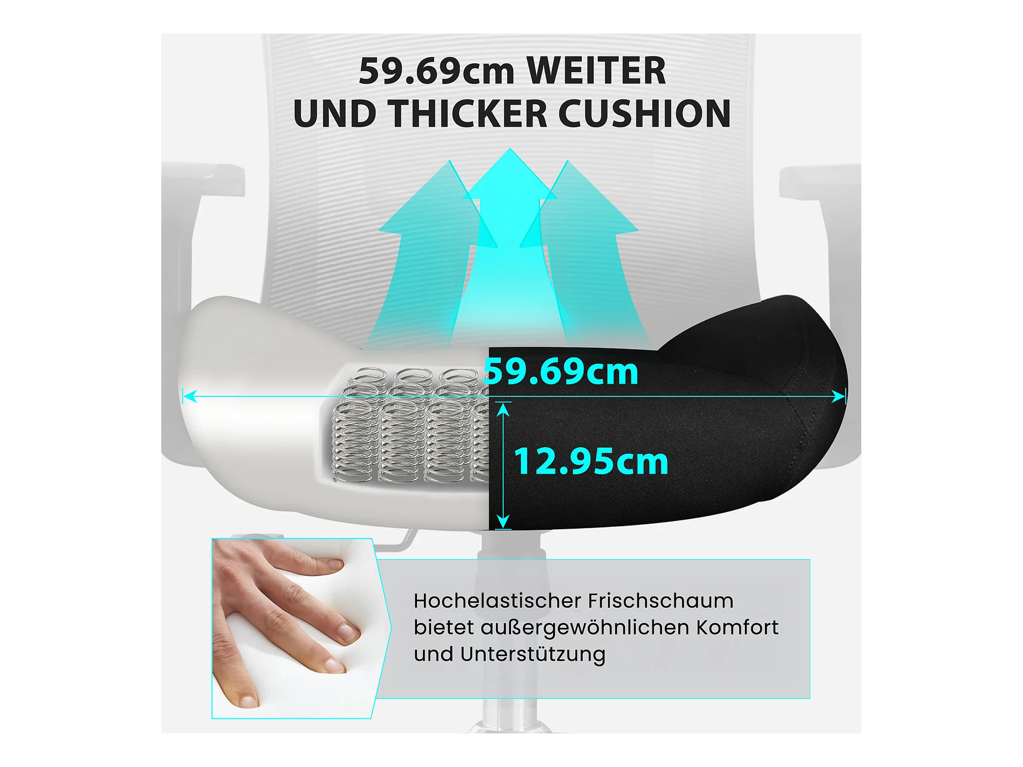 Chaise de bureau ergonomique 200 kg, coussin 3D ultra doux, accoudoirs 4D réglables, support lombaire ajustable, dossier mesh respirant, bascule 105° confortable