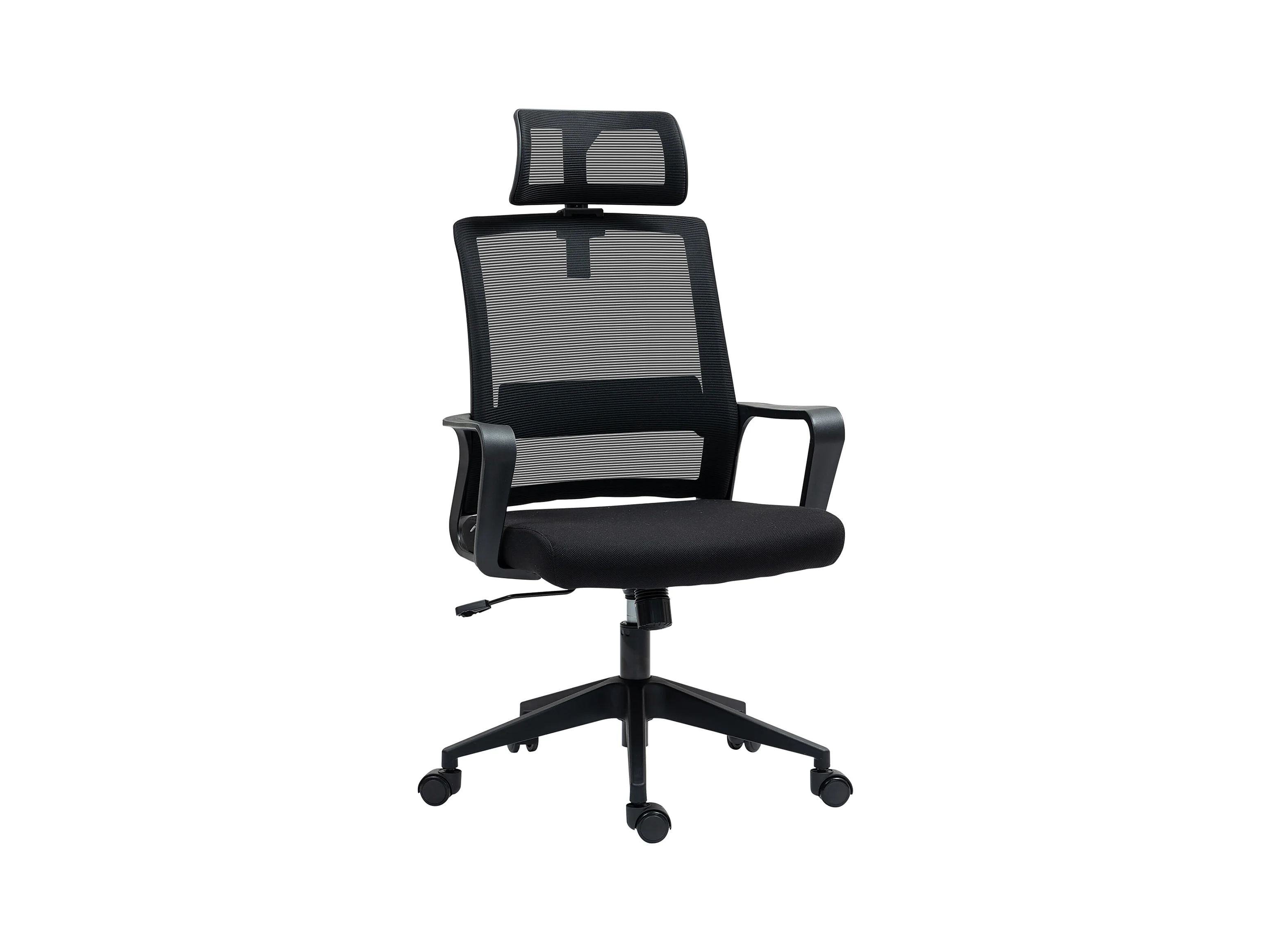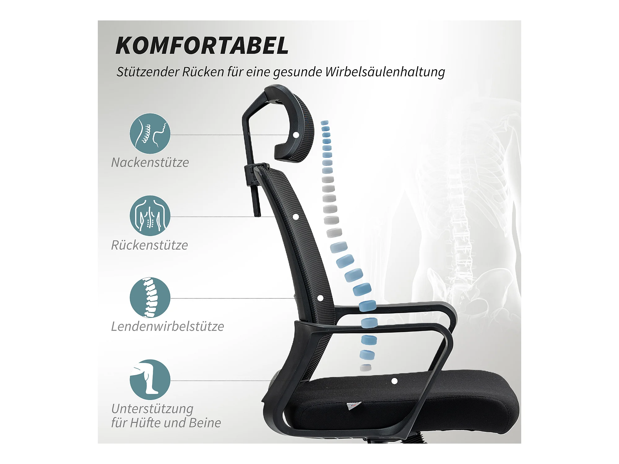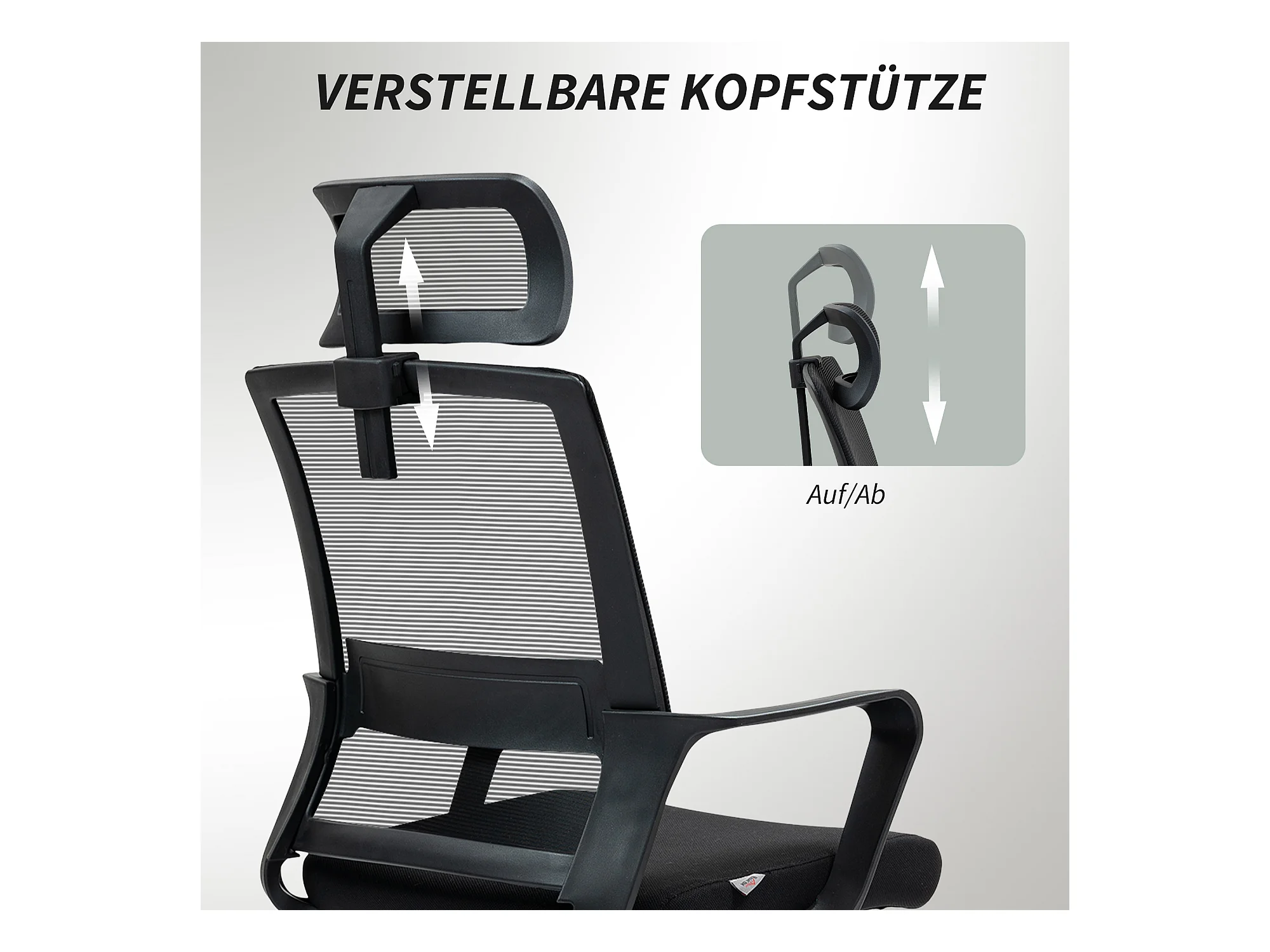 Chaise de bureau ergonomique avec accoudoirs, tête réglable, tissu mesh, noir (60x64x102-112 cm)