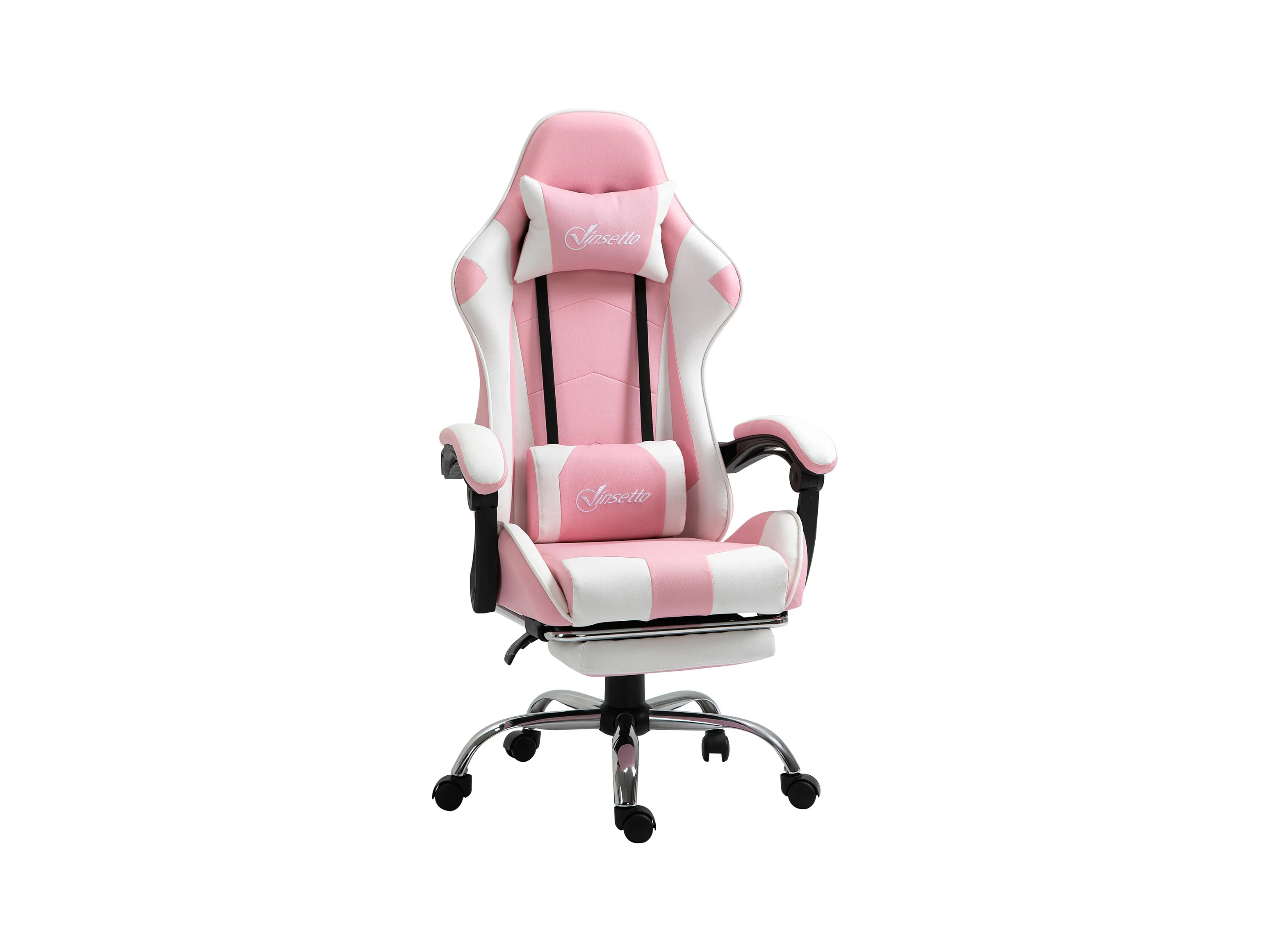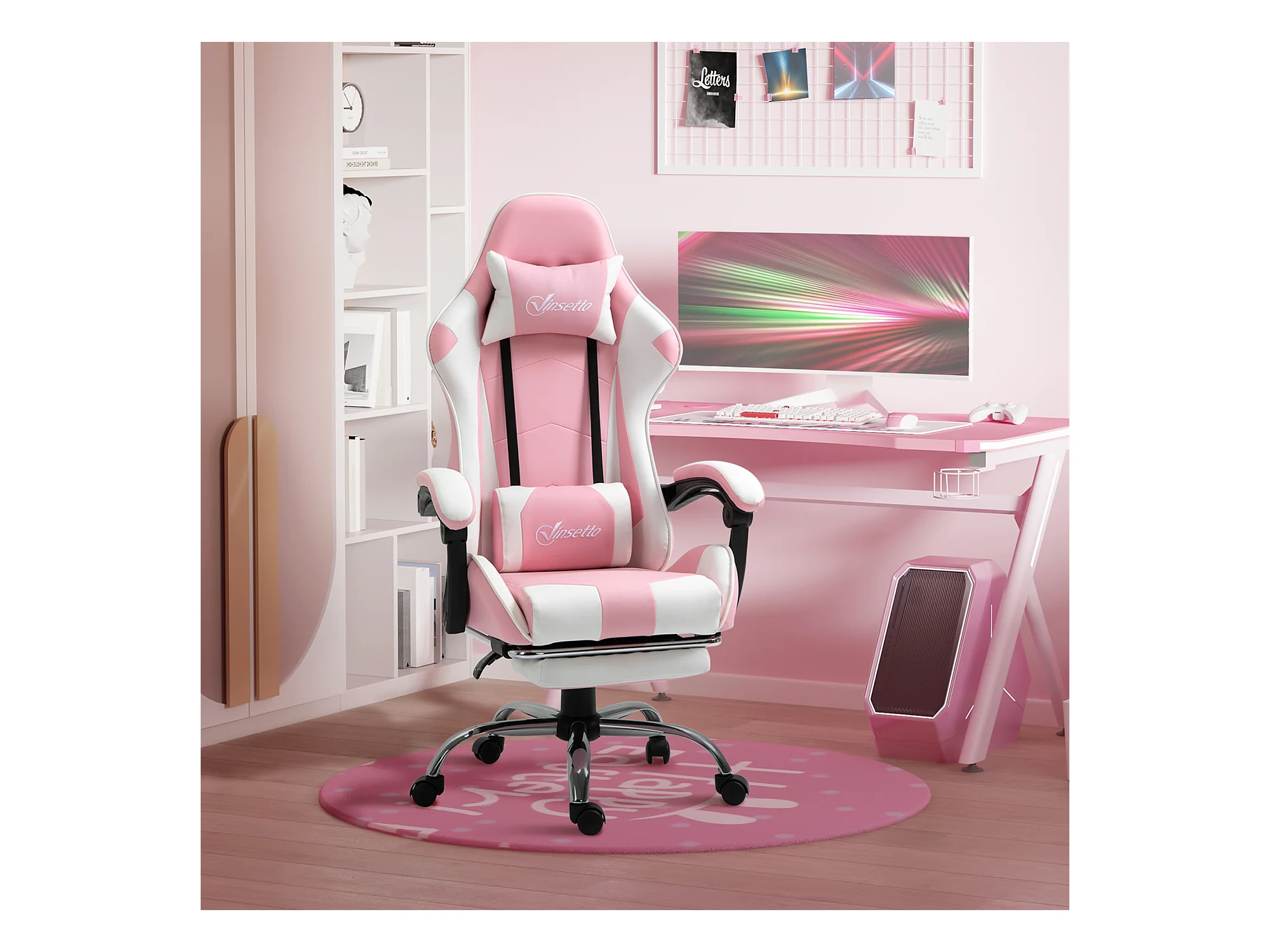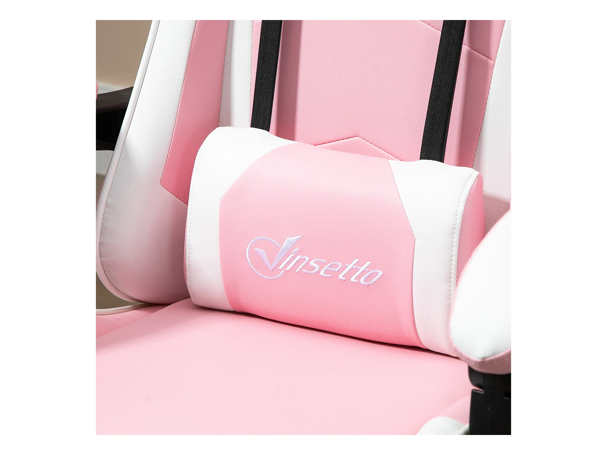 Chaise de bureau ergonomique avec appui-tête, lendenkissen et hauteur réglable, design gaming, en simili cuir, rose et blanc (64x67x119-127 cm)