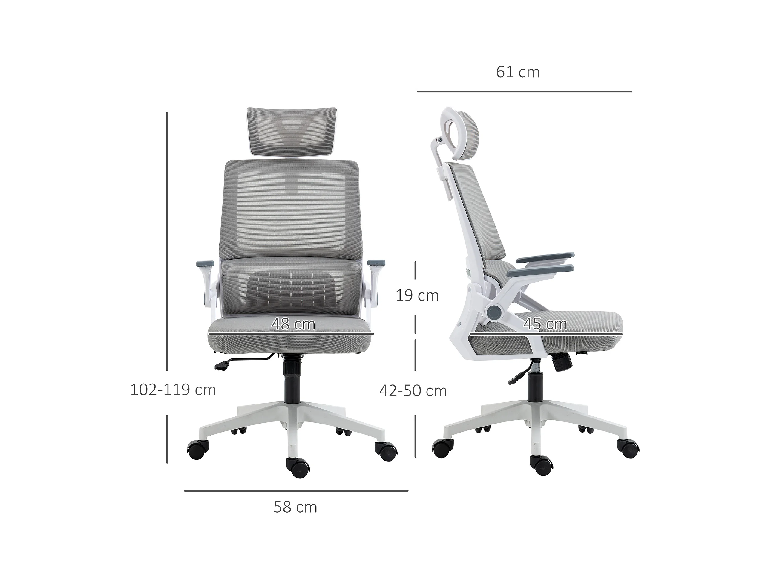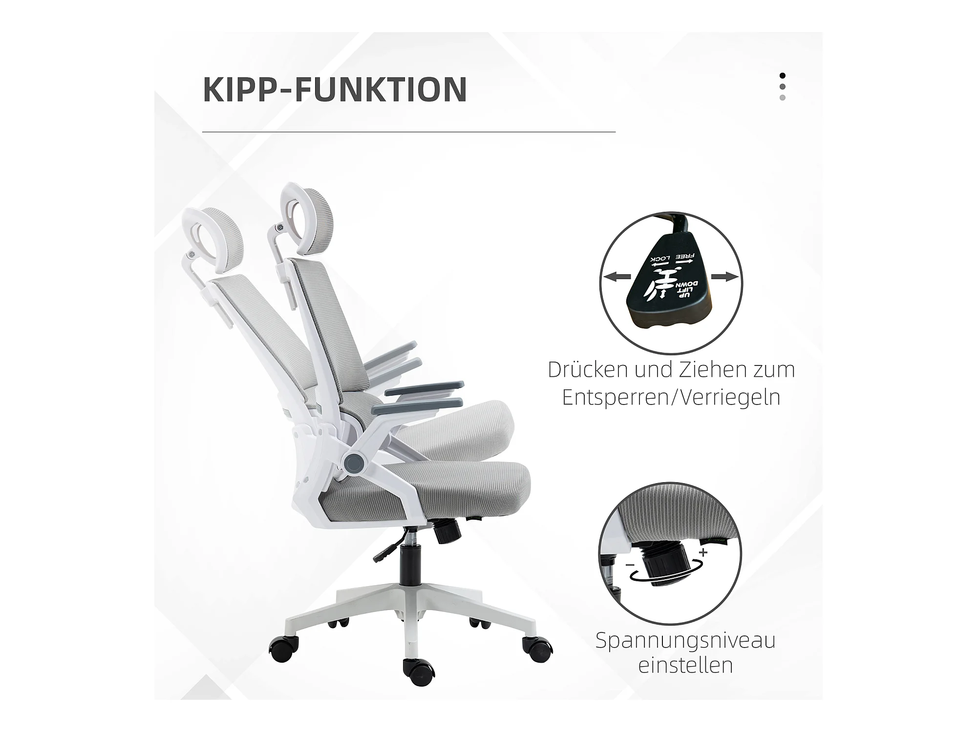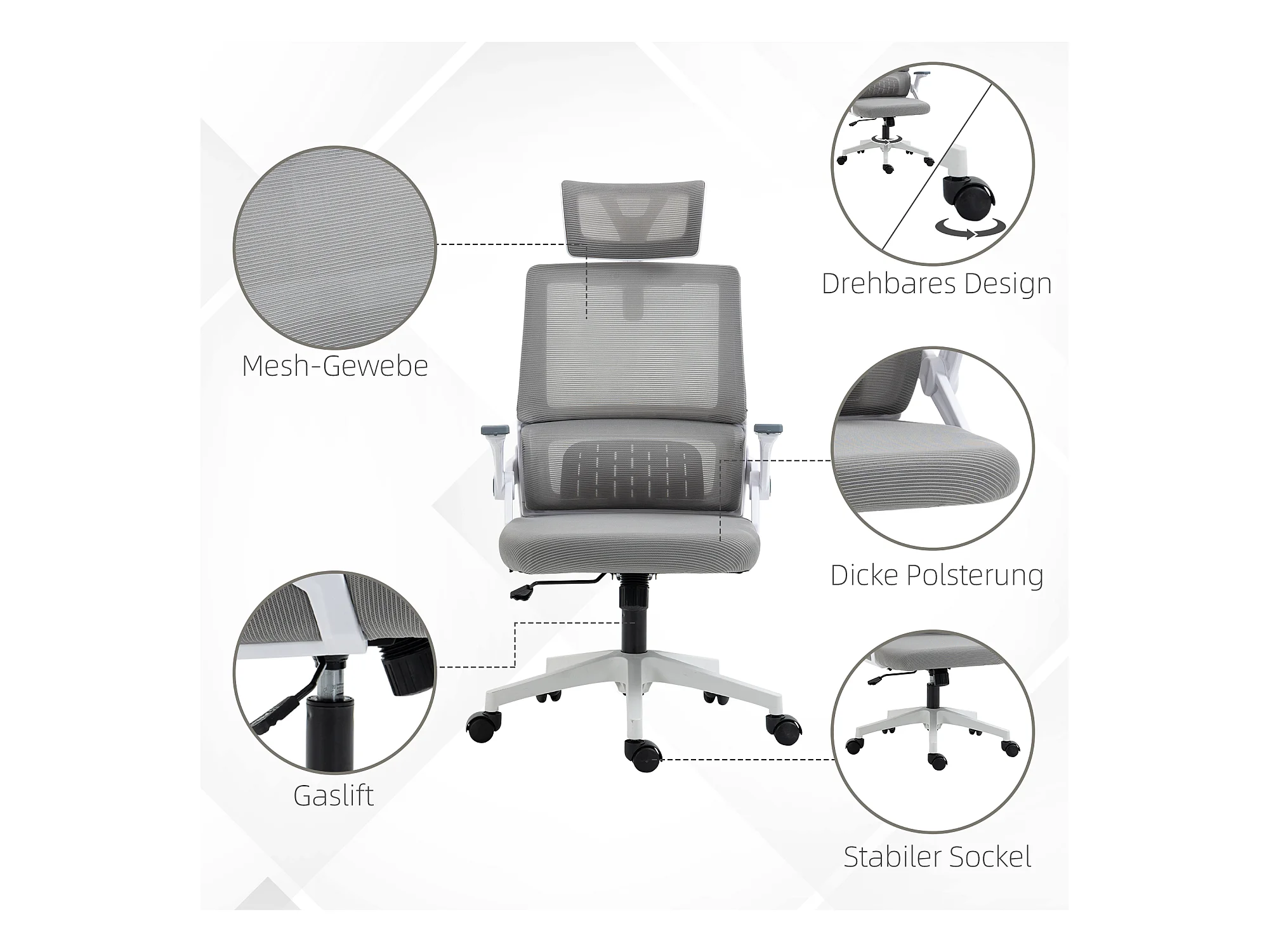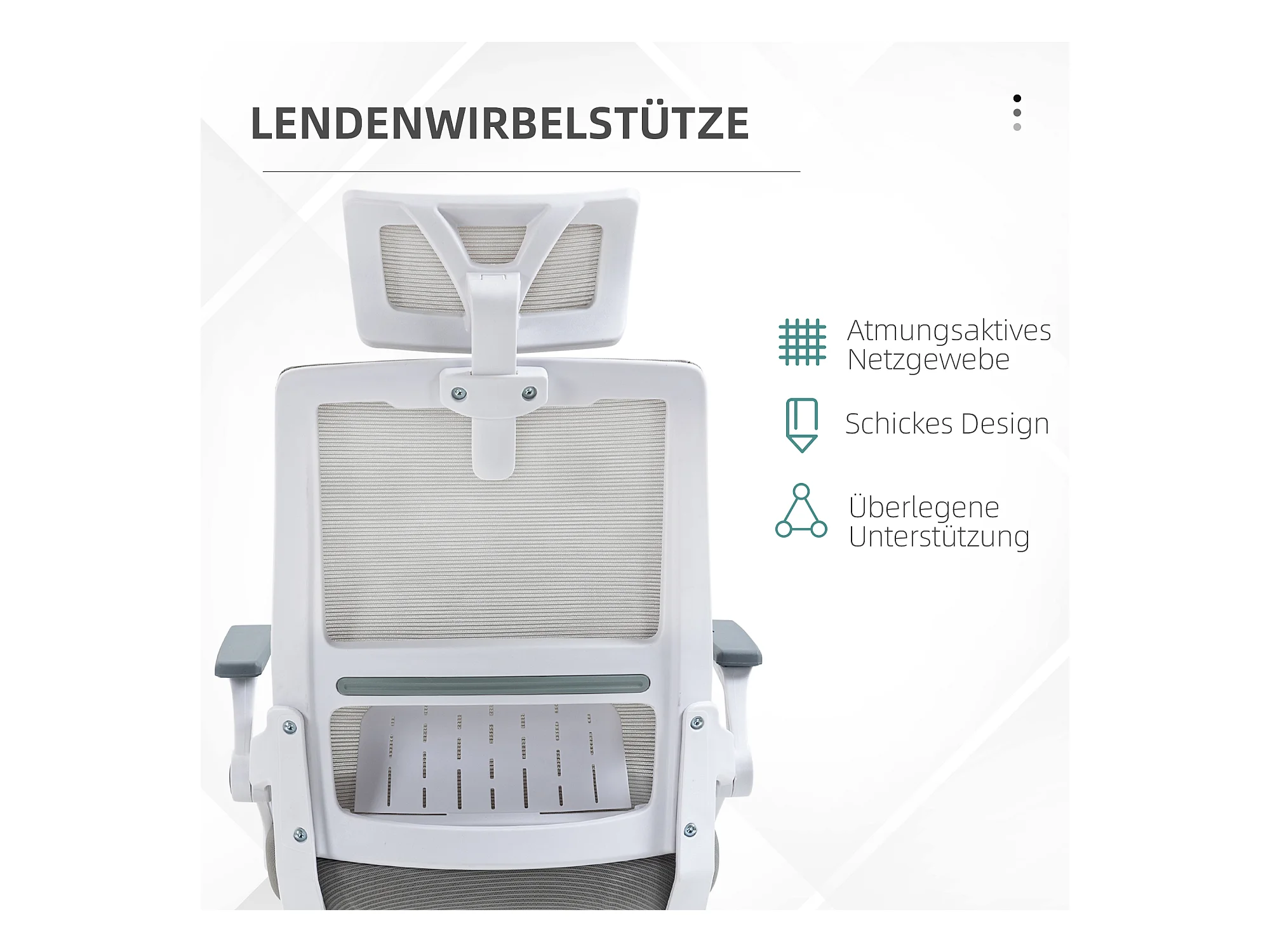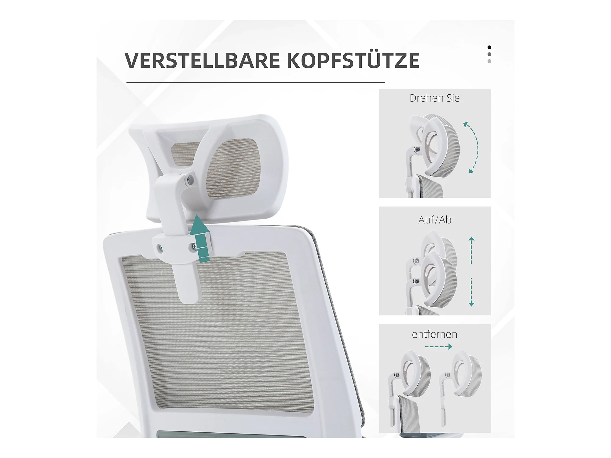 Chaise de bureau ergonomique avec appui-tête, siège pivotant réglable en hauteur, fonction bascule, soutien lombaire en mesh