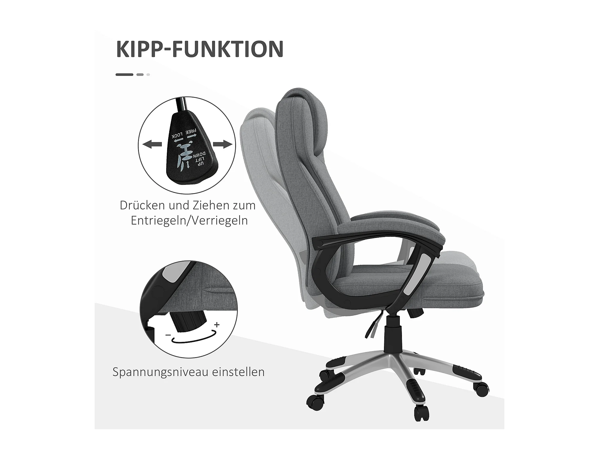 Chaise de bureau ergonomique avec fonction bascule, hauteur réglable, appui-tête, accoudoirs, tissu lin, gris (66x75x110-120 cm)