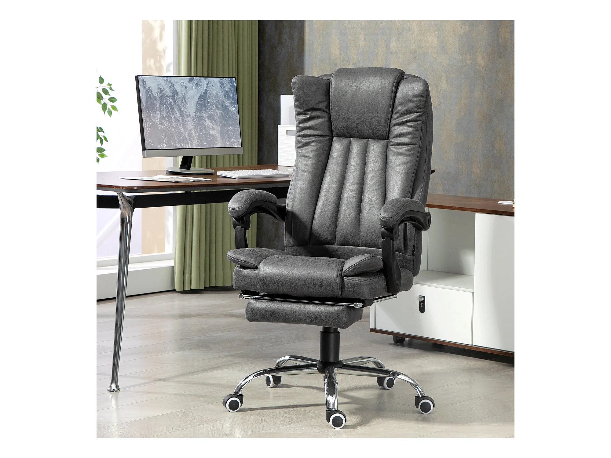 Chaise de bureau ergonomique avec fonction massage et inclinable, réglable en hauteur, pivotante, avec repose-pieds, gris, confortable et pratique
