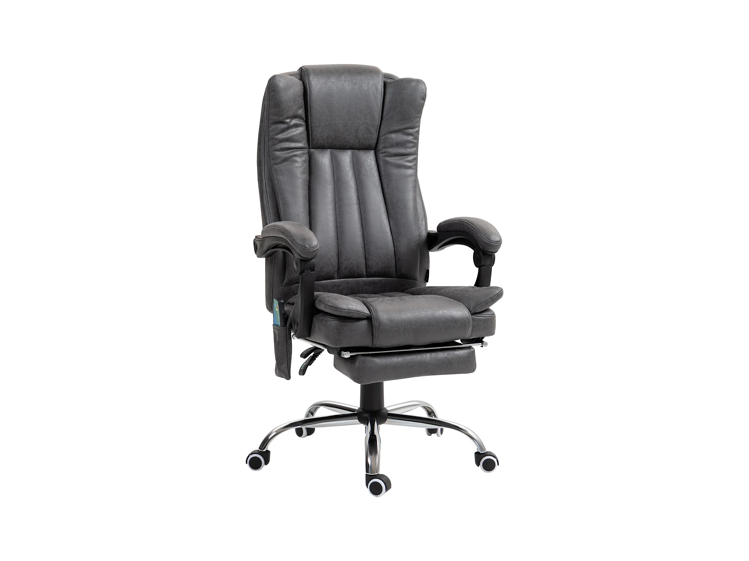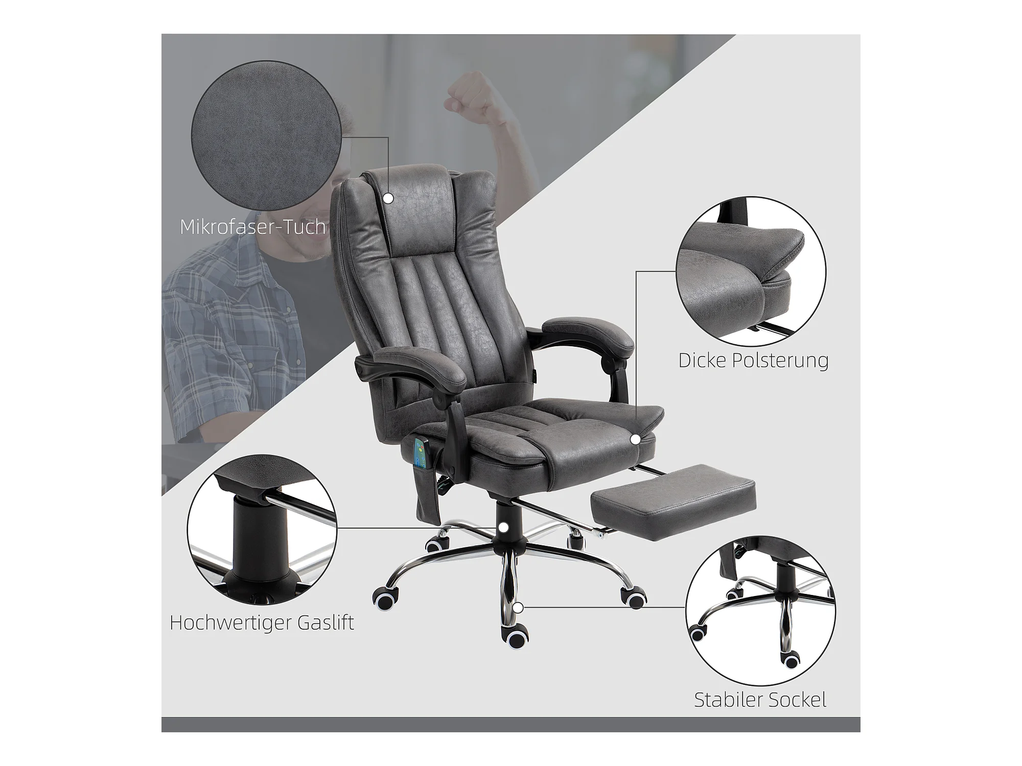 Chaise de bureau ergonomique avec massage et chauffage, 6 points de massage, repose-pieds, télécommande, revêtement polyester, couleur gris, confortable