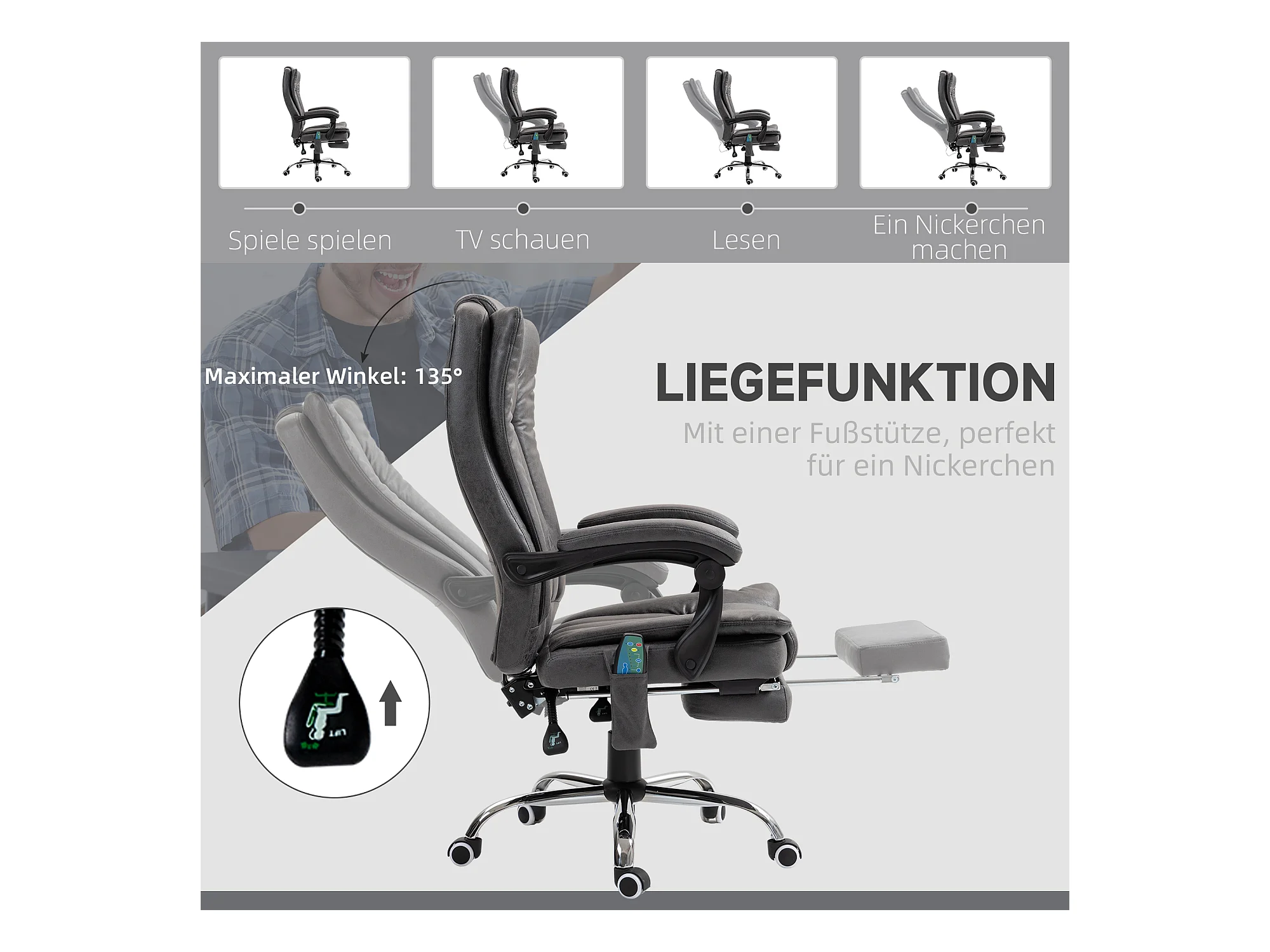 Chaise de bureau ergonomique avec massage et chauffage, réglable en hauteur, repose-pieds extensible, couleur gris, confortable