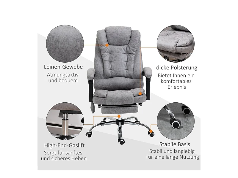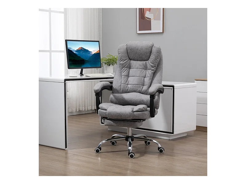 Fauteuil de bureau ergonomique avec fonction massage, repose-pieds réglable, assise confortable gris clair, idéal pour bureau et home office