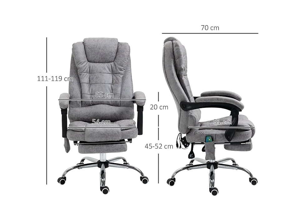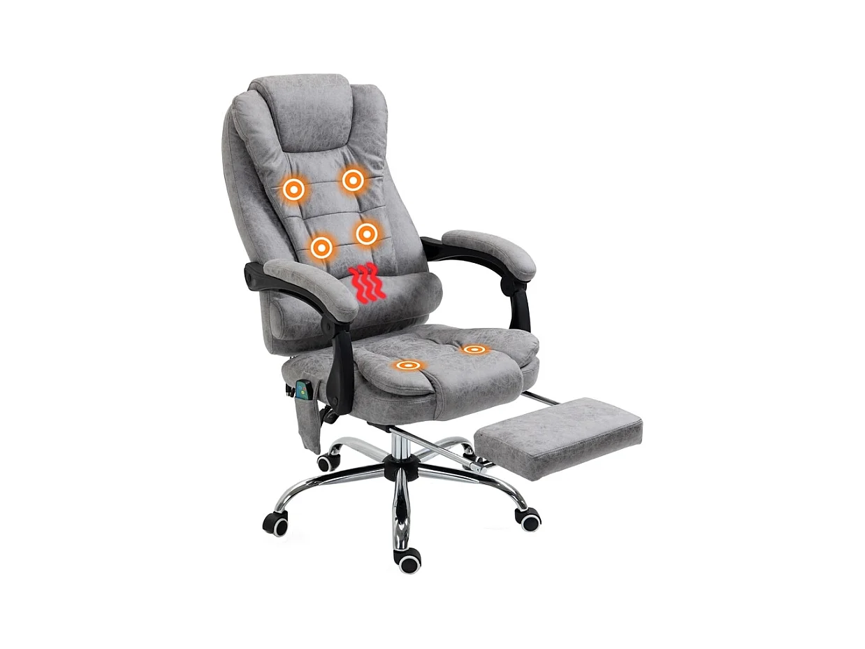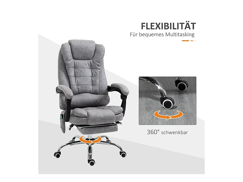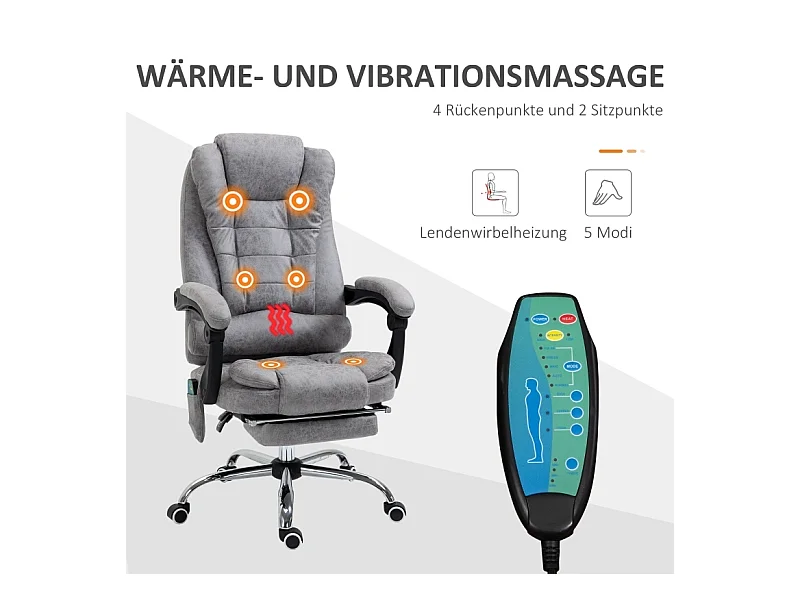 Chaise de bureau ergonomique avec massage et chauffage, 6 points de massage, repose-pieds, télécommande, revêtement polyester, couleur gris, confortable