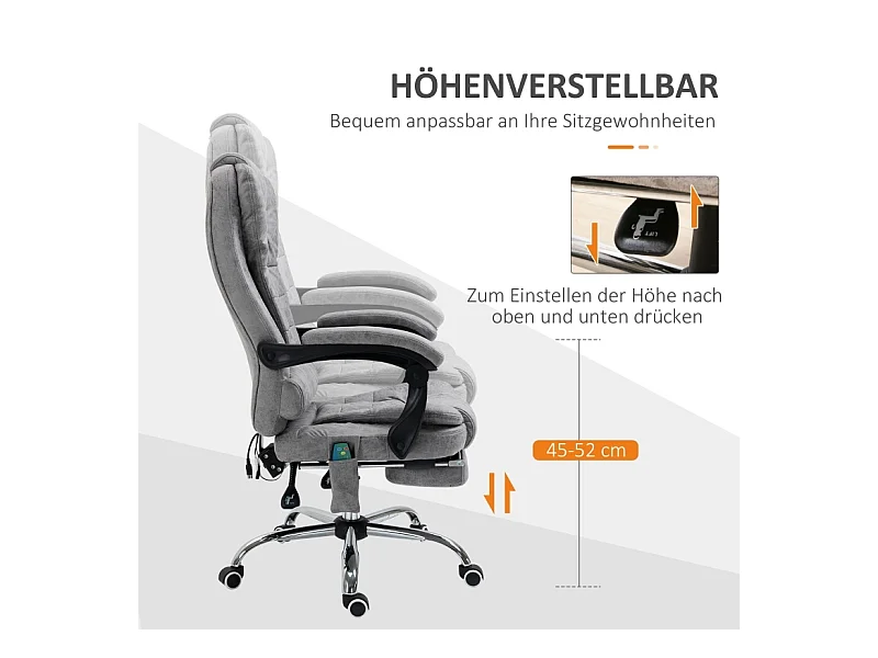 Chaise de bureau ergonomique avec massage et chauffage, réglable en hauteur, repose-pieds extensible, couleur gris, confortable