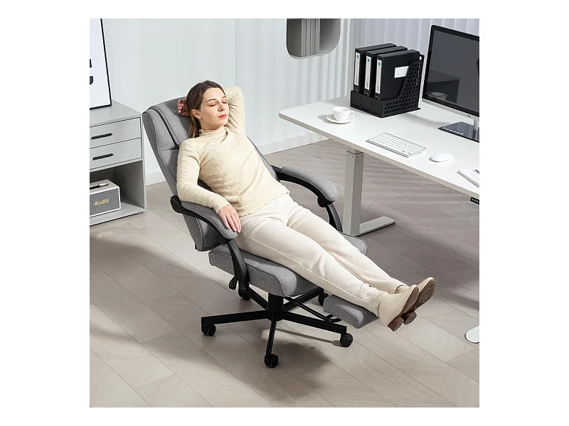 Chaise de bureau ergonomique avec massage et fonction inclinable, repose-pieds, réglable en hauteur, revêtement imitation lin, couleur gris