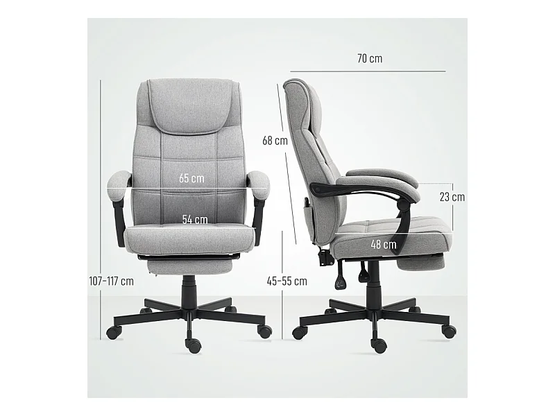 Fauteuil de bureau inclinable avec repose-pieds, ergonomique, réglable en hauteur, rembourré, jusqu'à 120 kg, pour bureau ou atelier, gris