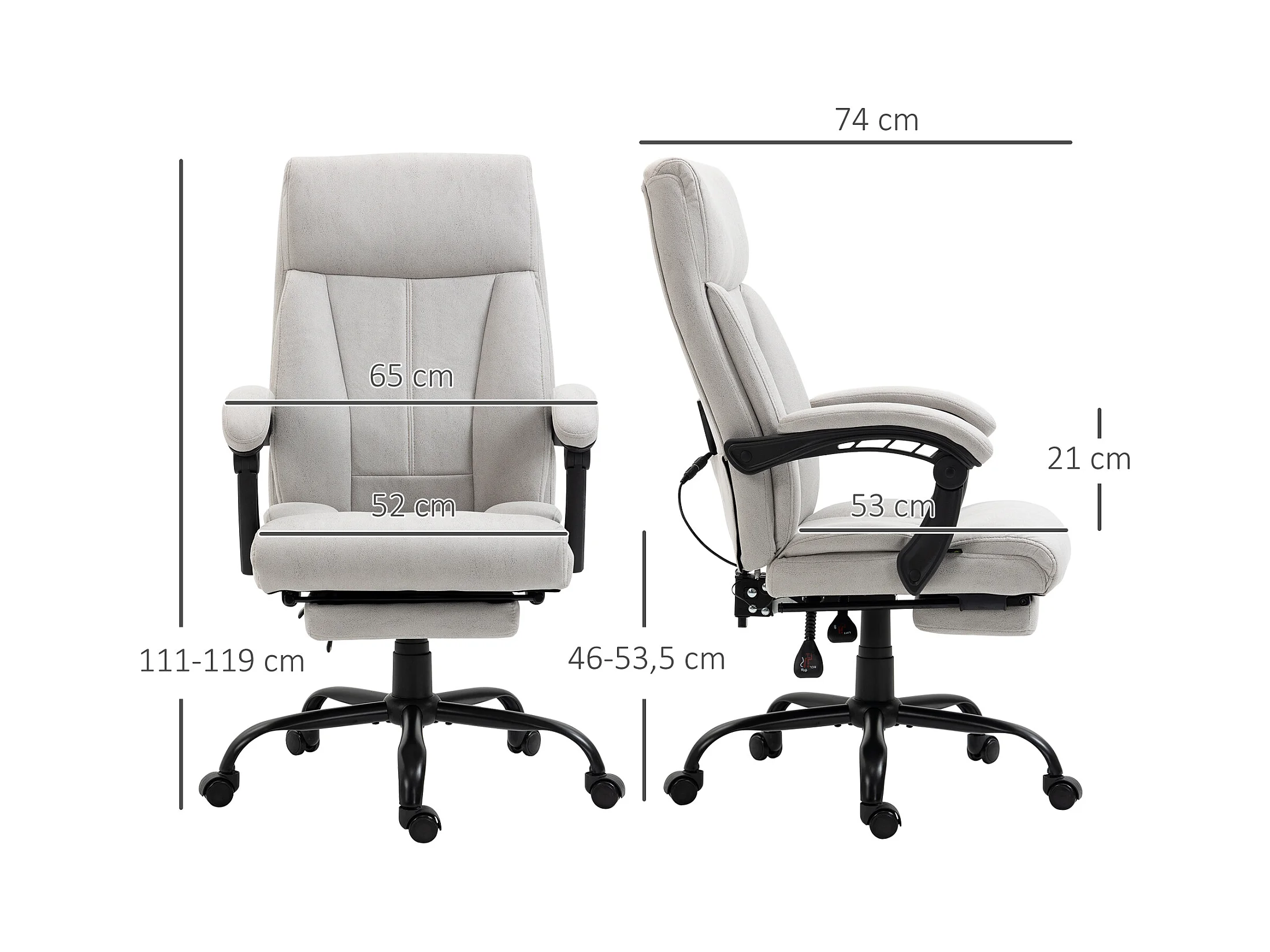 Fauteuil de bureau ergonomique avec fonction massage, repose-pieds réglable, assise confortable gris clair, idéal pour bureau et home office