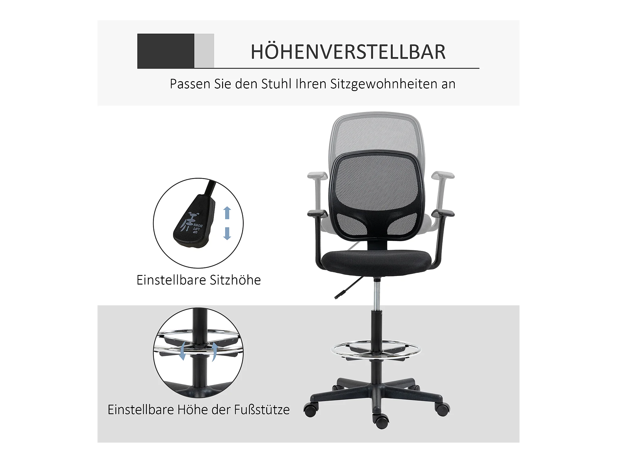 Fauteuil de bureau ergonomique avec dossier en maille, réglable en hauteur, fonction bascule, mousse, noir (63x65x109-119cm)