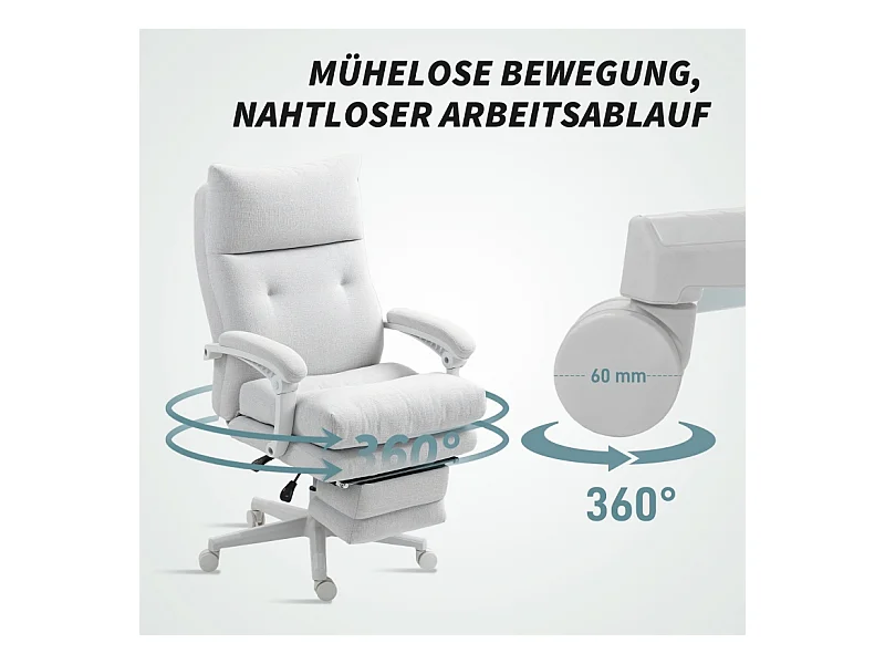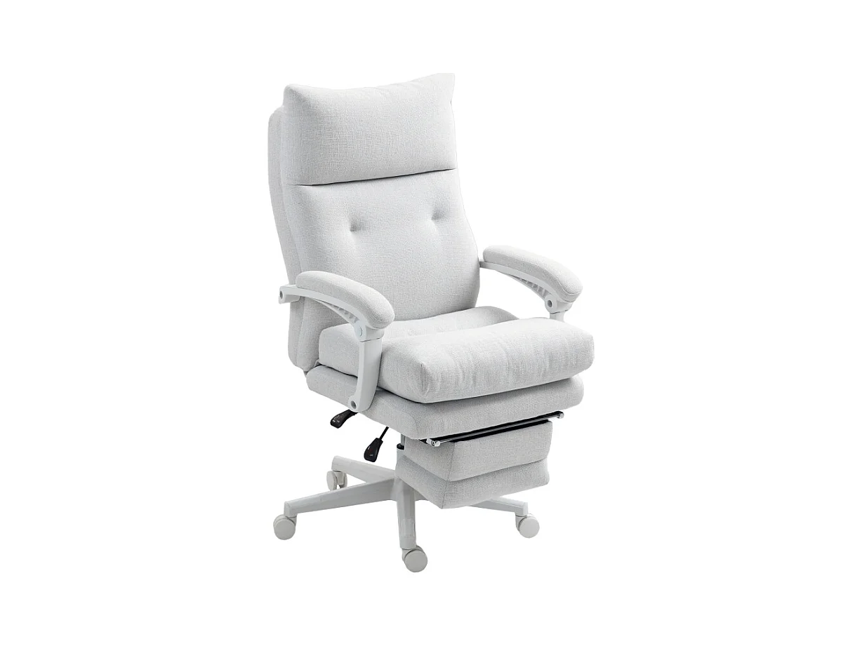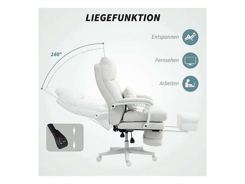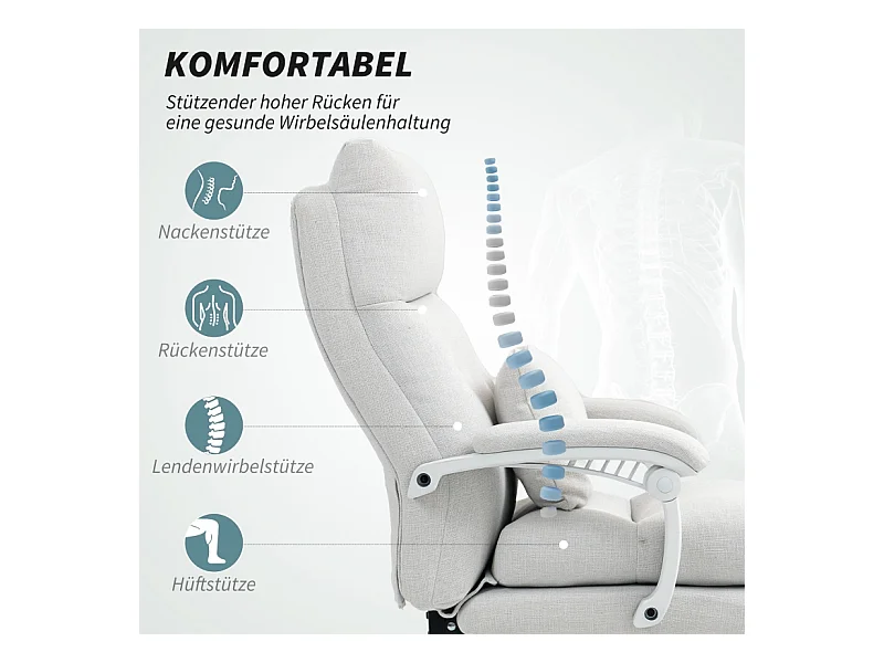 Chaise de bureau ergonomique avec soutien lombaire, dossier haut, repose-pieds, en polyester, crème (70x68x122 cm)