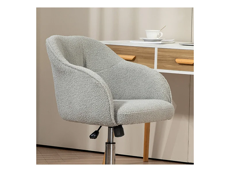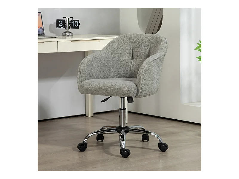 Chaise de bureau pivotante ergonomique en velours, hauteur réglable, gris clair, design confortable et élégant pour salon et espace de travail