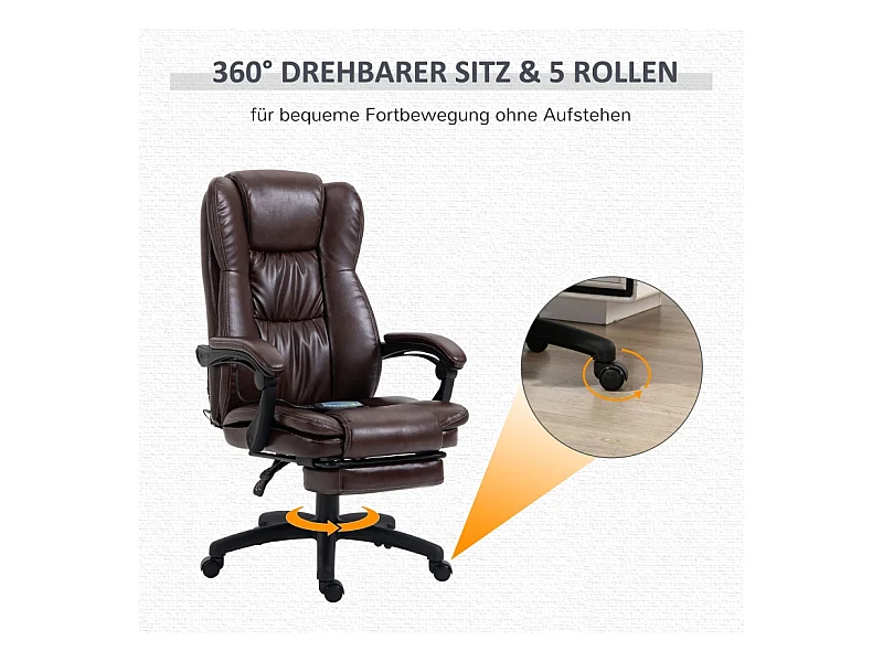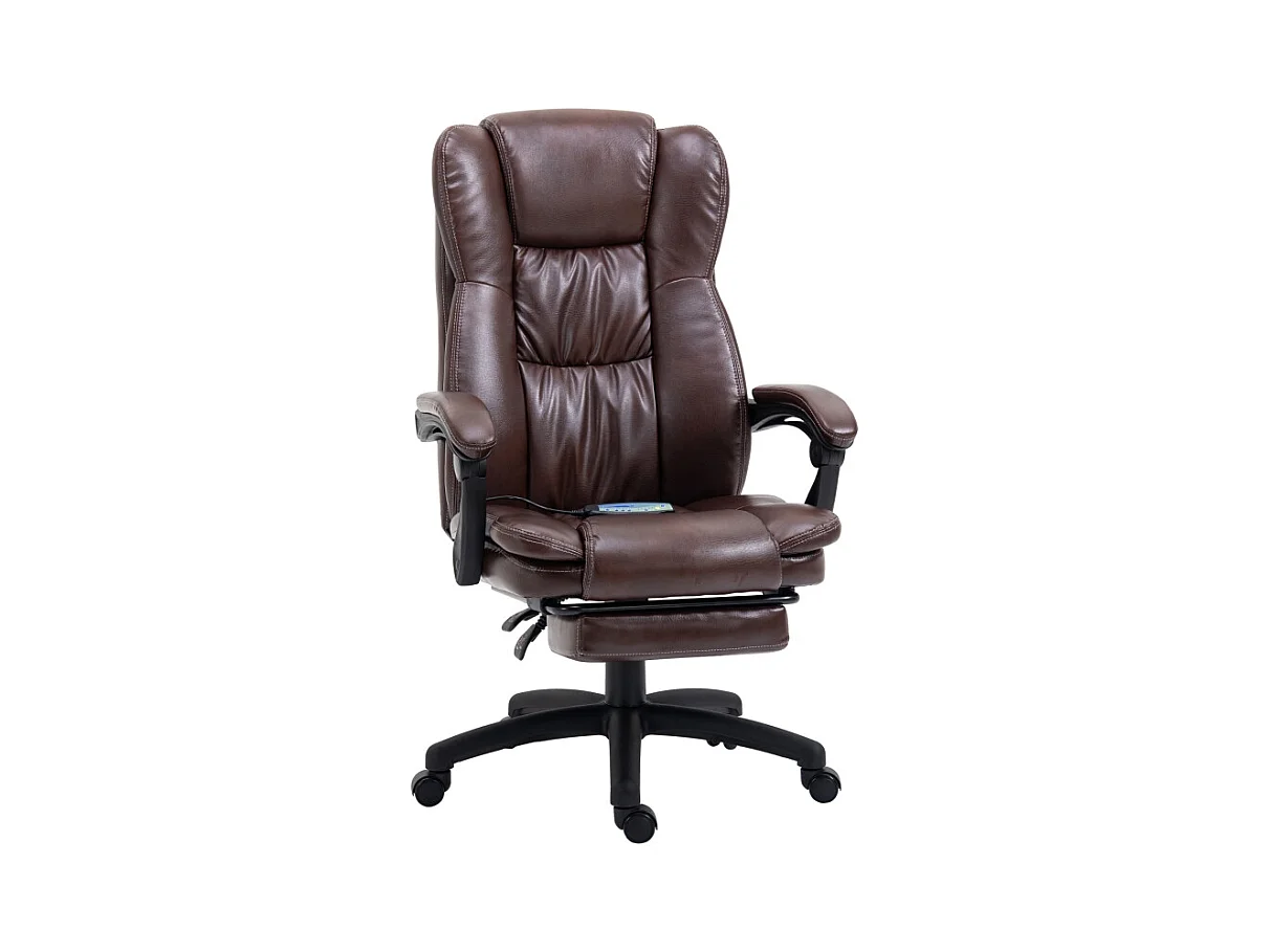 Chaise de bureau ergonomique réglable, avec repose-pieds et appui-tête, massage intégré, cuir synthétique, 68,5x68,5x113-121 cm, Marron