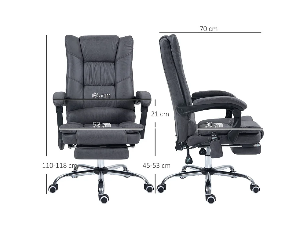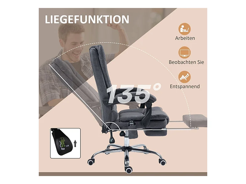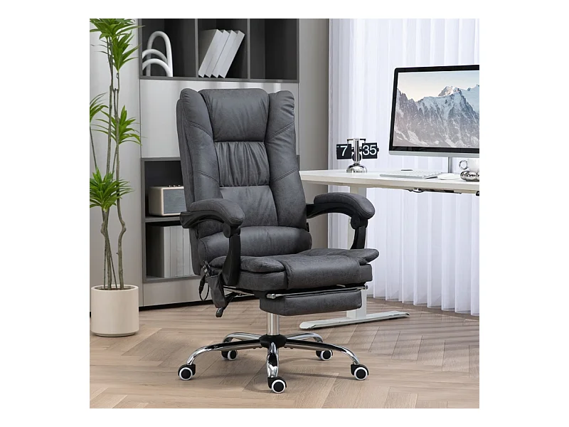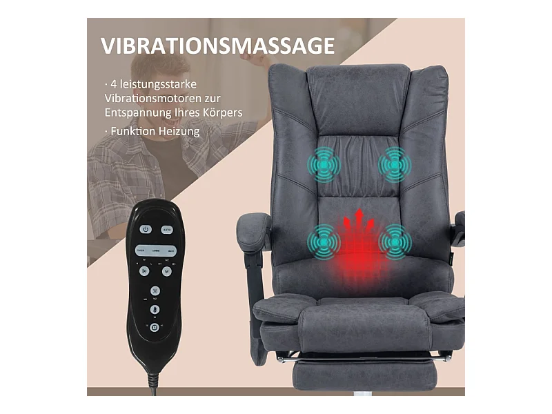 Chaise de bureau ergonomique Vinsetto avec fonction massage et chauffage, inclinable 135°, réglable en hauteur, support jusqu’à 120 kg, couleur gris