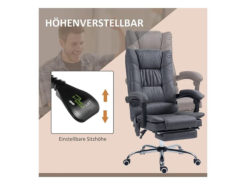 Fauteuil de bureau avec massage, réglable en hauteur, siège d'ordinateur avec repose-pieds, gris, pour bureau ou home office