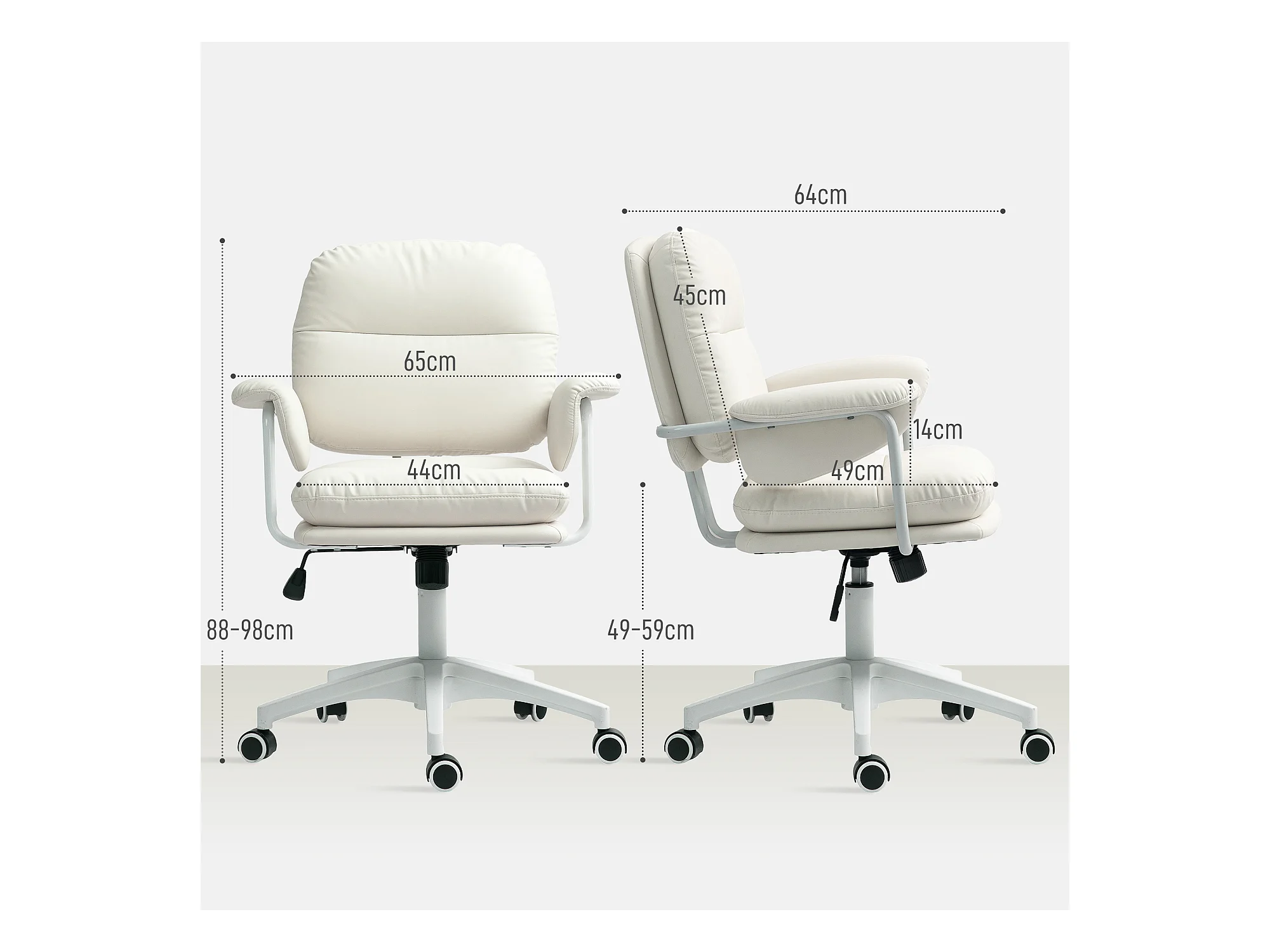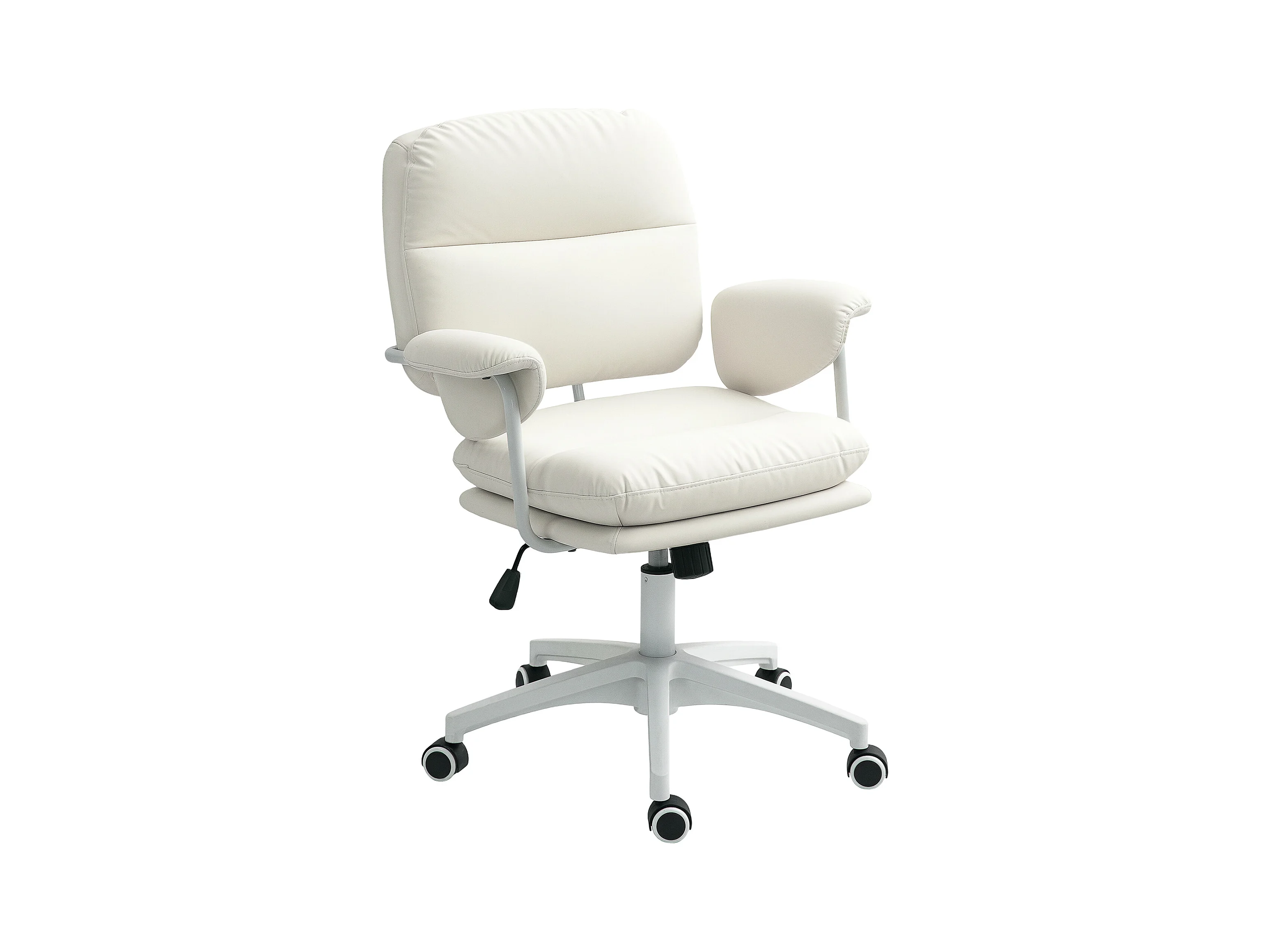 Chaise de bureau inclinable et rembourrée, pivotante avec repose-pieds, réglable en hauteur, capacité 120 kg, simili cuir, blanc