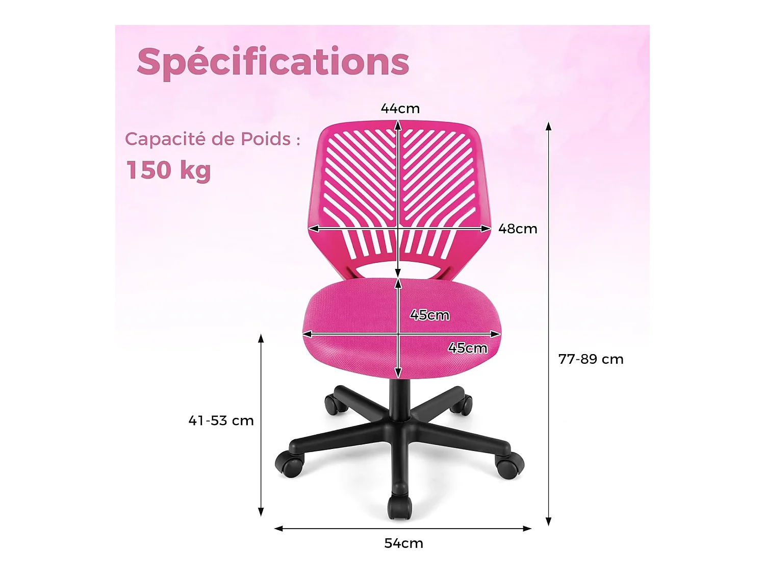 Chaise de bureau Rose 44x52x100 cm Tissu en maille FR742581