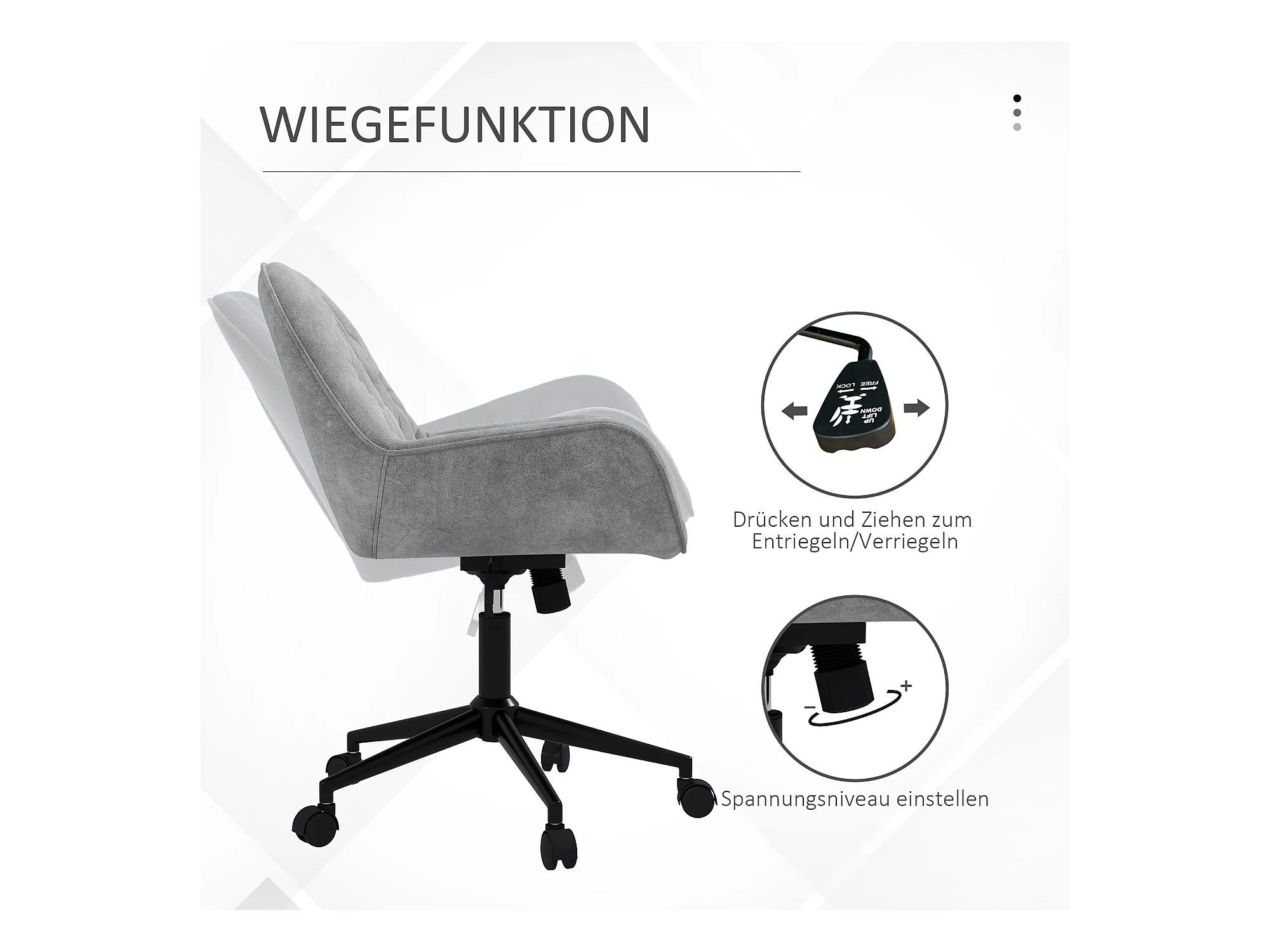 Chaise de bureau sans accoudoirs, pivotante et rembourrée, revêtement en tissu doux, réglable en hauteur, pieds en acier, couleur gris, confortable et pratique