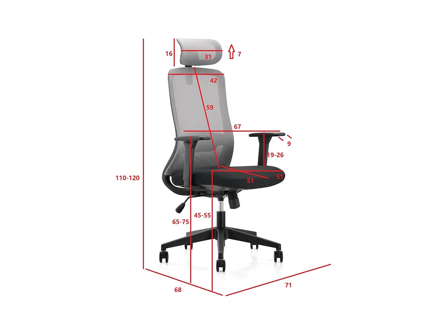 Fauteuil de bureau ergonomique avec accoudoirs et repose-pieds, mesh noir, hauteur réglable (59x59x95-115cm)