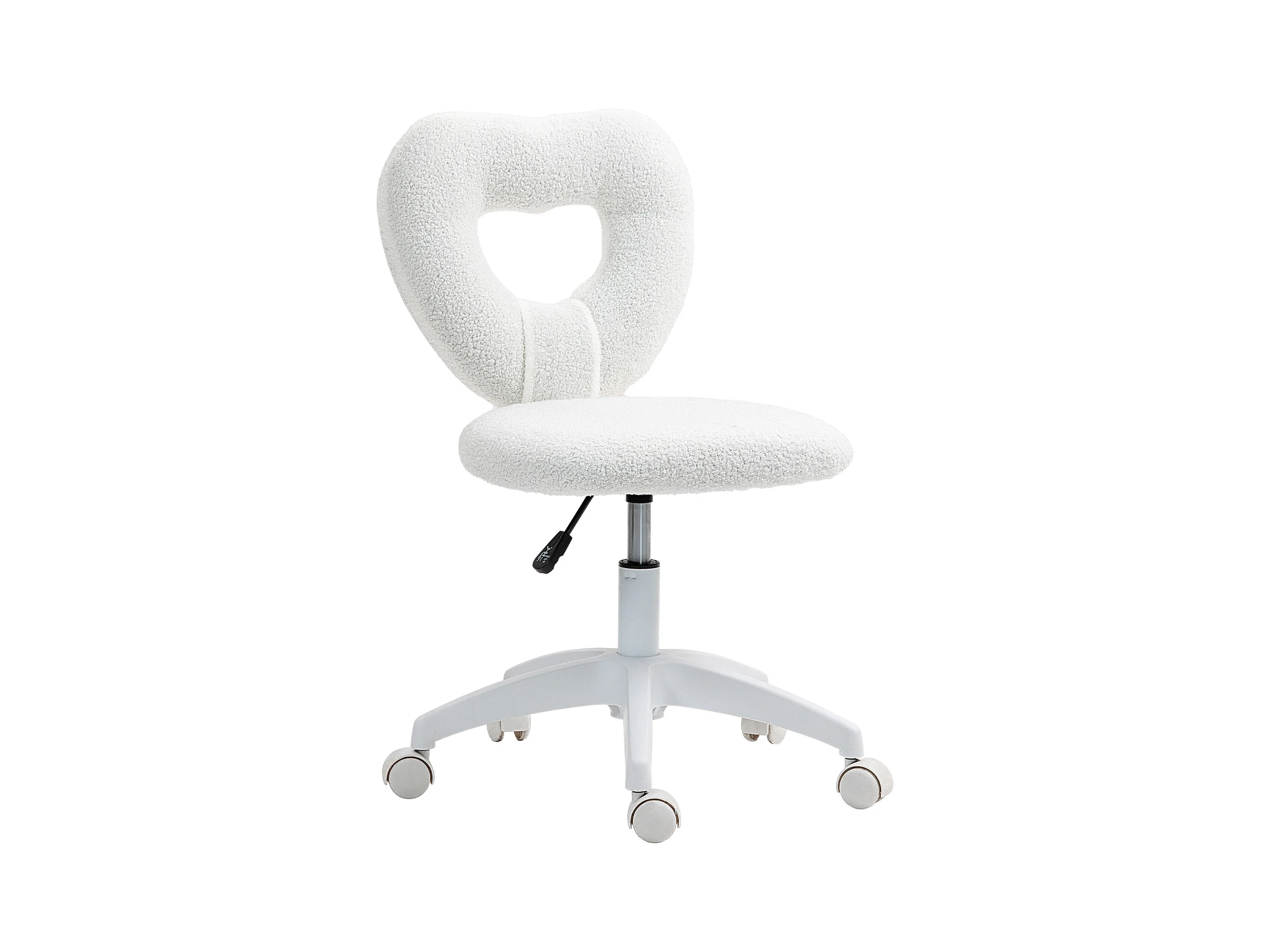 Chaise de bureau pivotante pour home office, dossier en forme de cœur, réglable en hauteur, en peluche Teddy, chaise coiffeuse blanche