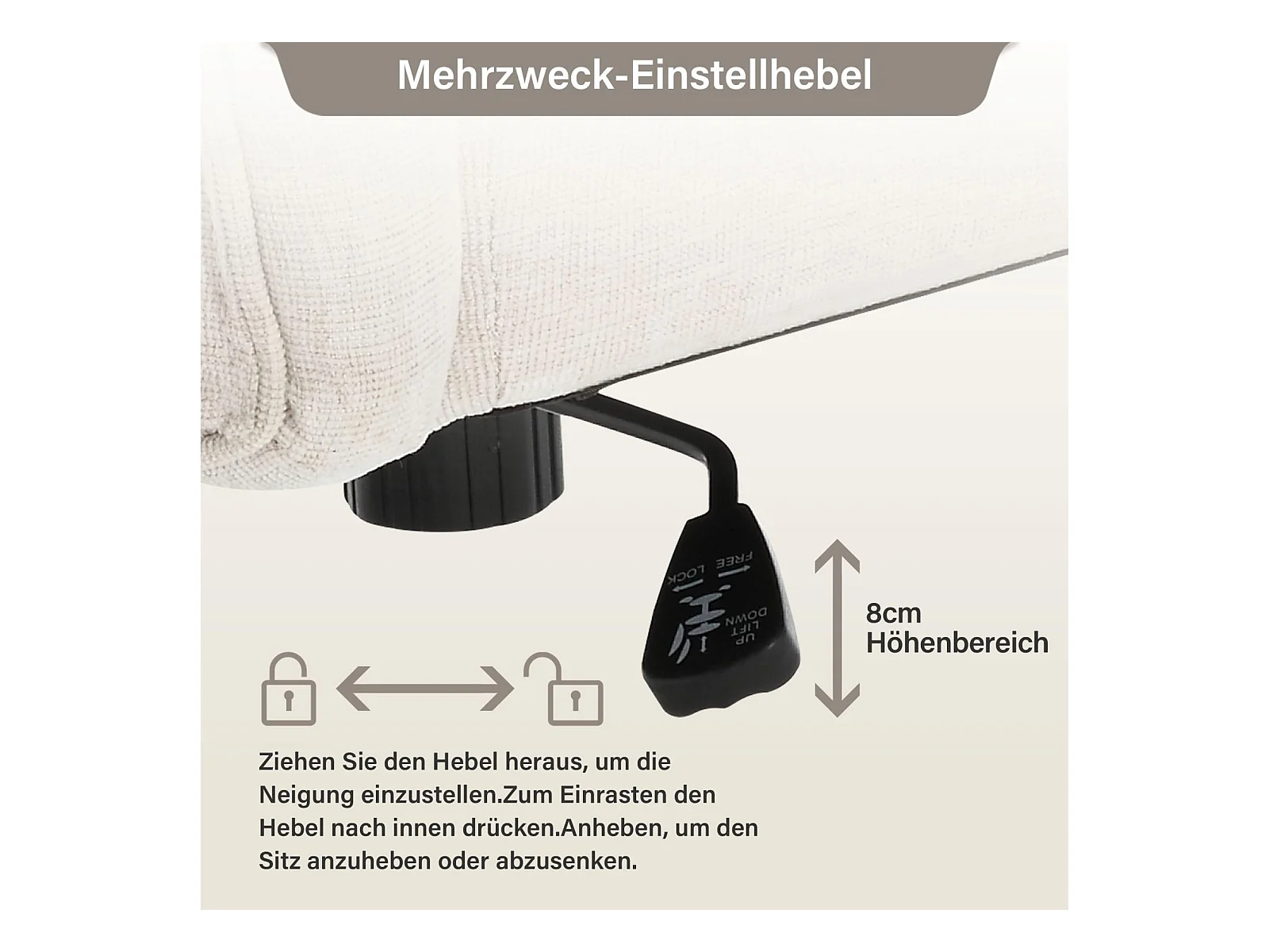 Chaise de bureau réglable en hauteur avec fonction bascule, revêtement aspect lin beige, confortable pour bureau ou home office