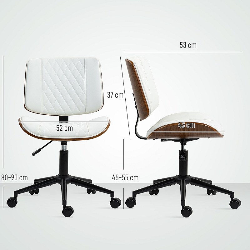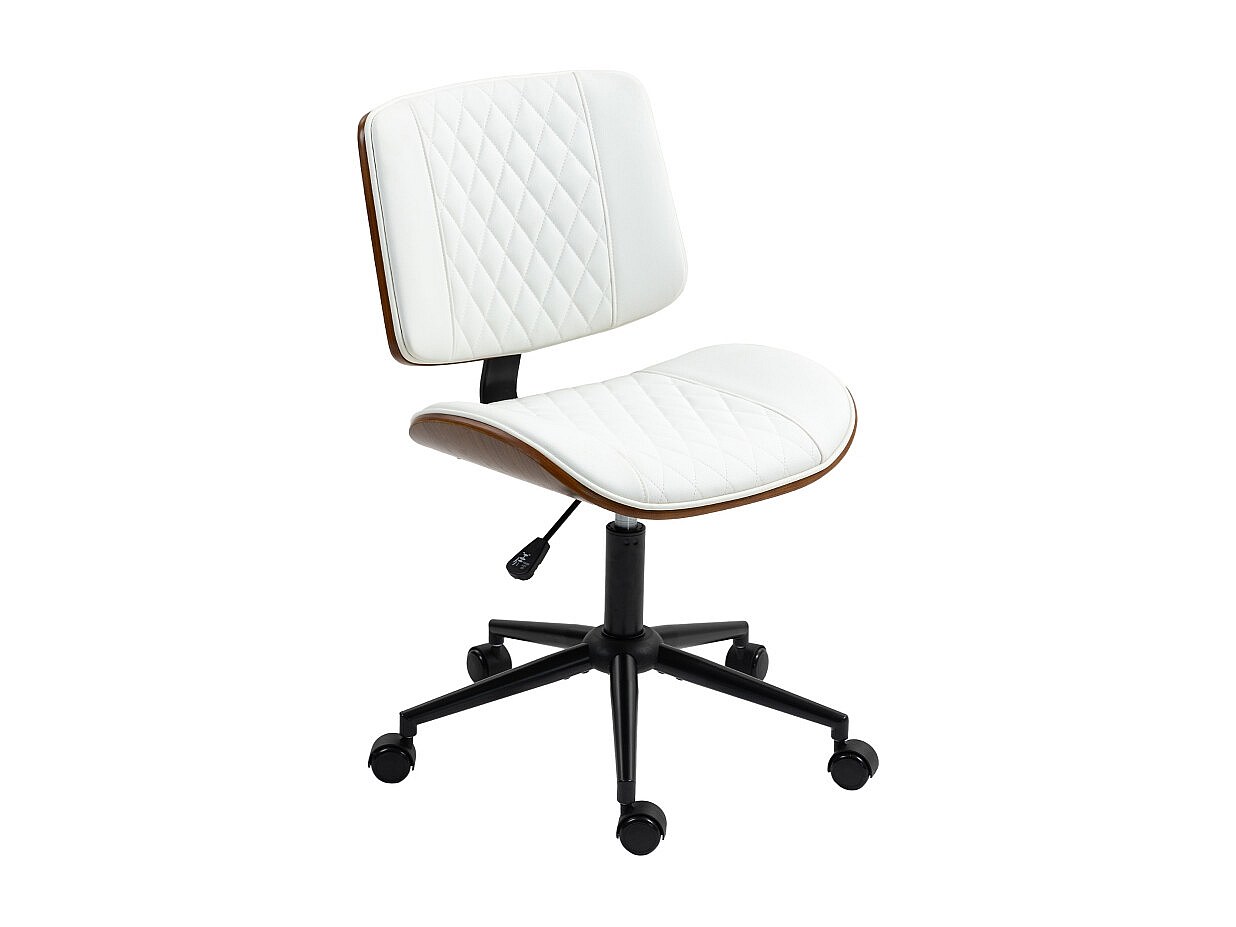 Chaise de bureau réglable avec roulettes, revêtement simili cuir blanc avec matelassage diamant, pivotante avec fonction bascule