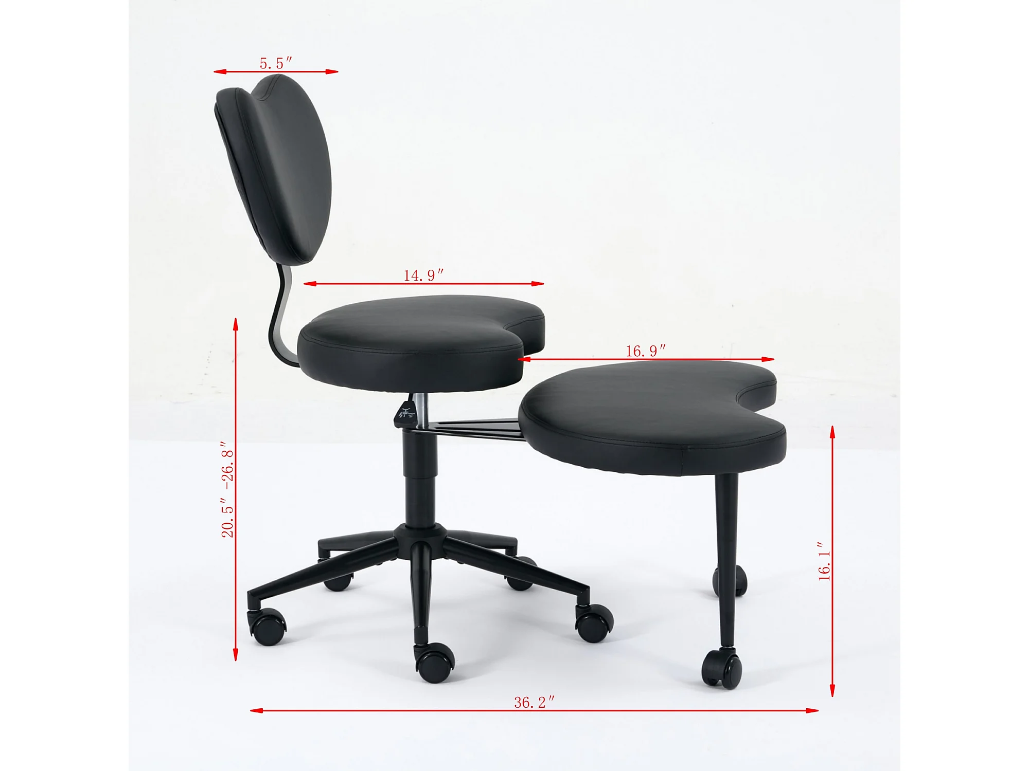 Chaise de bureau réglable en PU avec repose-pieds pivotant 360° et roulettes, noir