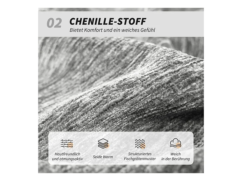 Chaise de bureau ergonomique avec accoudoirs et appui-tête, fauteuil pivotant réglable en hauteur, fonction bascule, tissu imitation laine, couleur gris
