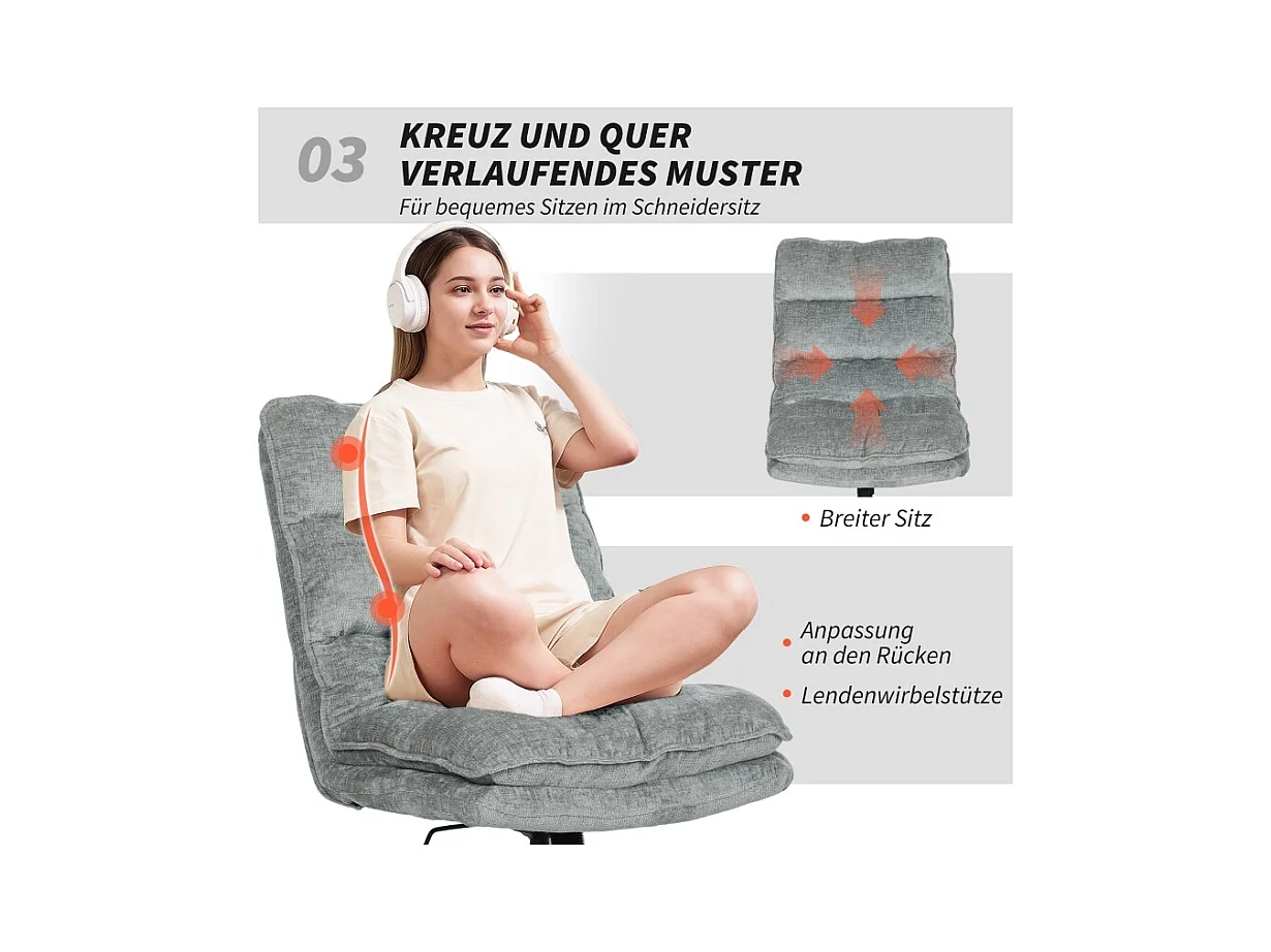 Chaise de bureau sans accoudoirs, large assise, réglable en hauteur, siège double épaisseur style tailleur, revêtement imitation lin, home office, gris