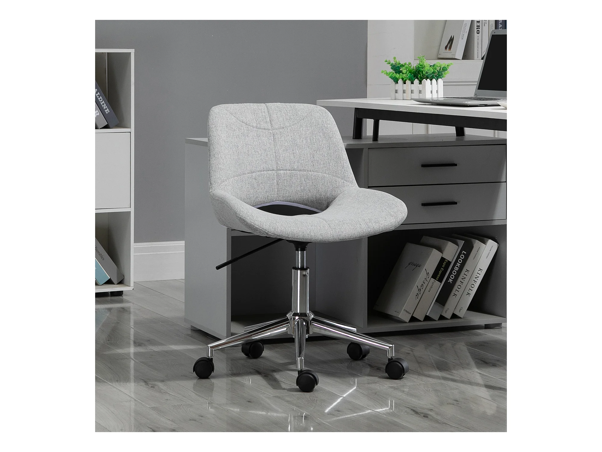 Chaise de bureau sans accoudoirs, avec fonction pivotante et réglable, tissu lin, gris foncé (60x47x89 cm)