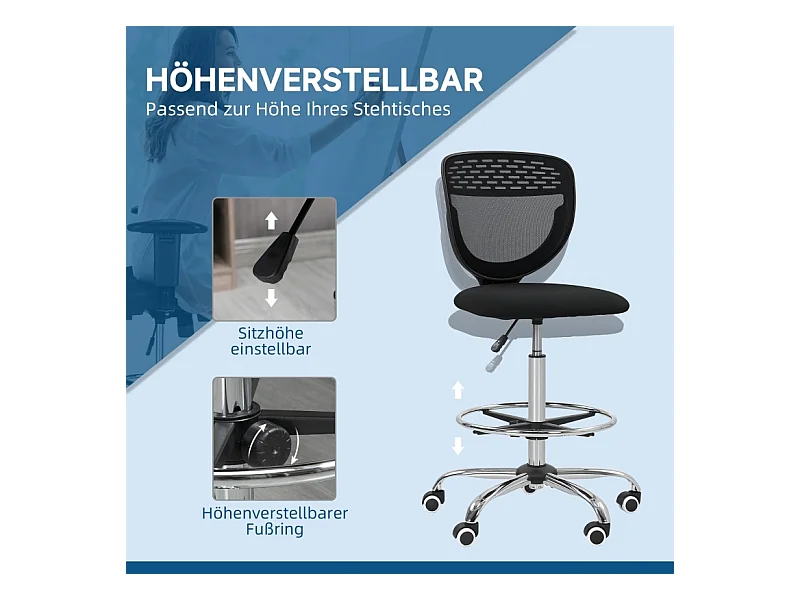 Chaise de bureau, siège de travail et chaise de bureau, réglable en hauteur, rembourrée , couleur noir, pratique pour home office