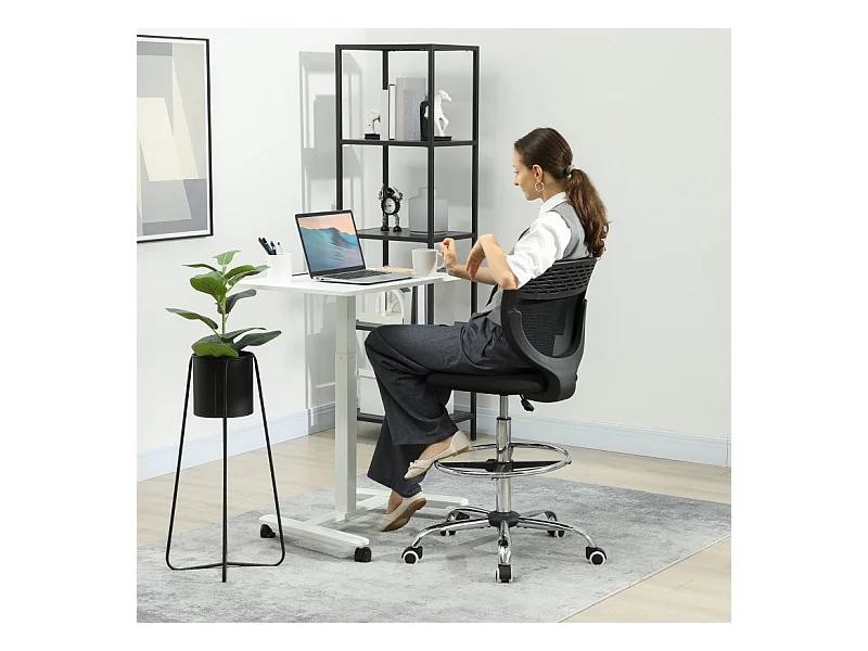 Fauteuil de bureau ergonomique type ordinateur, réglable, avec accoudoirs et repose-pieds, tissu mesh noir, pour bureau ou home office