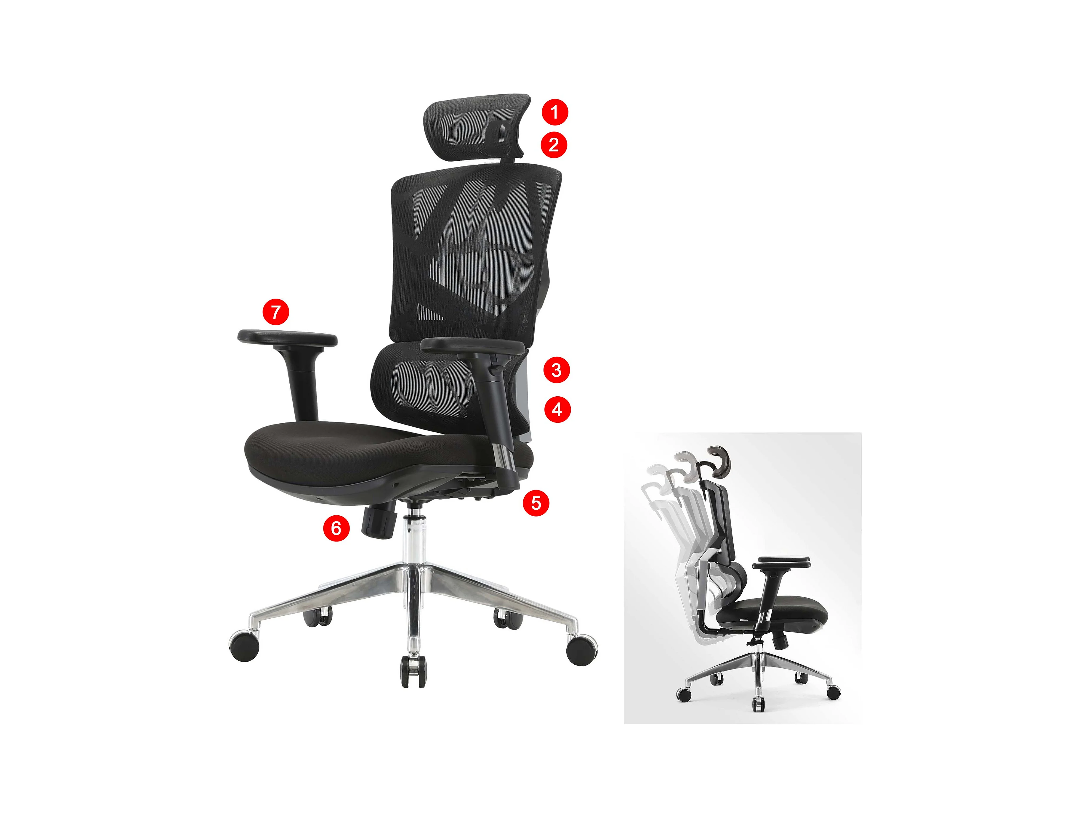 Chaise de bureau SIHOO-J86, avec repose-pieds, noir