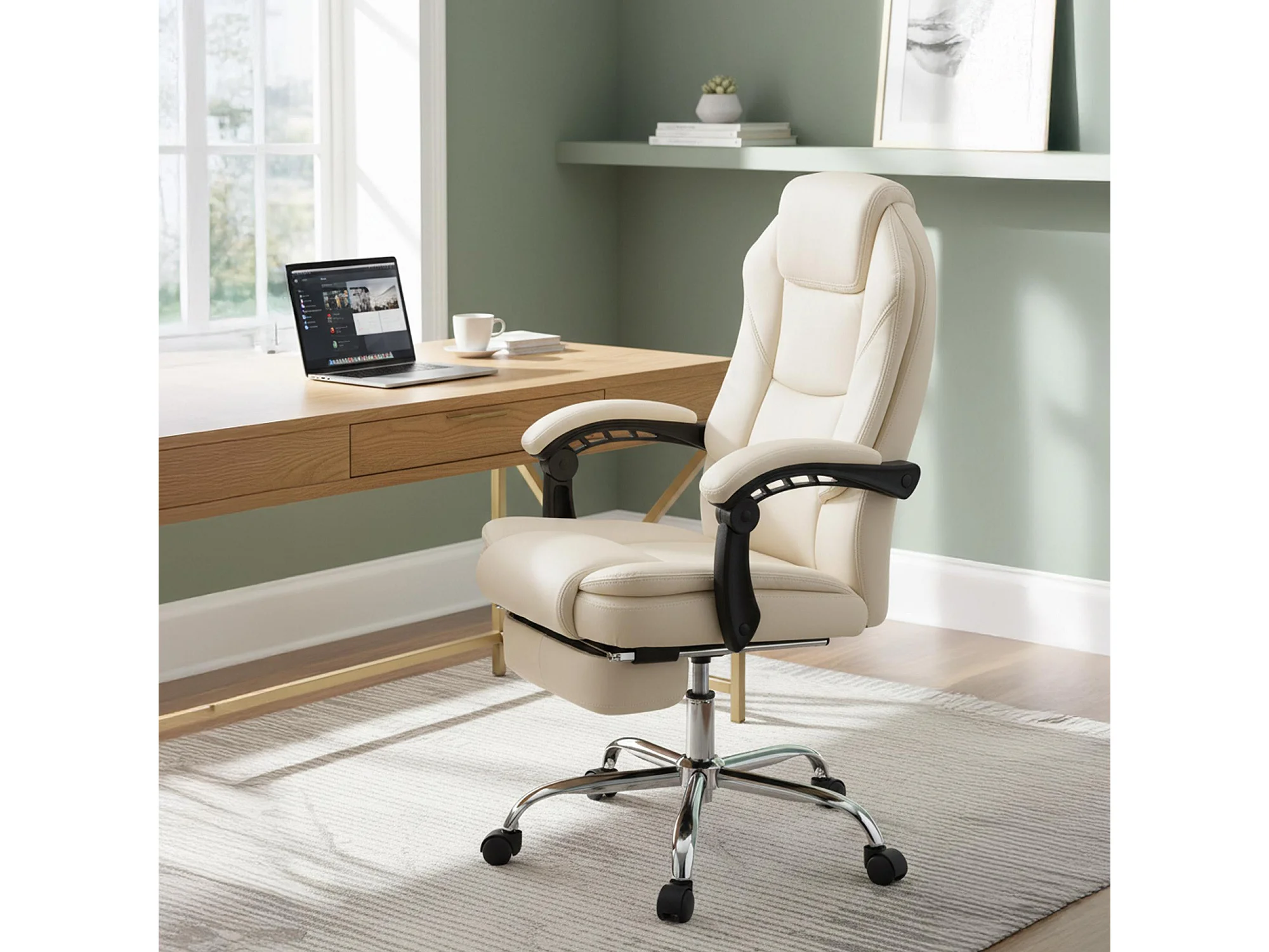 Chaise de bureau - Similicuir & Acier inoxydable - Crème - Castle