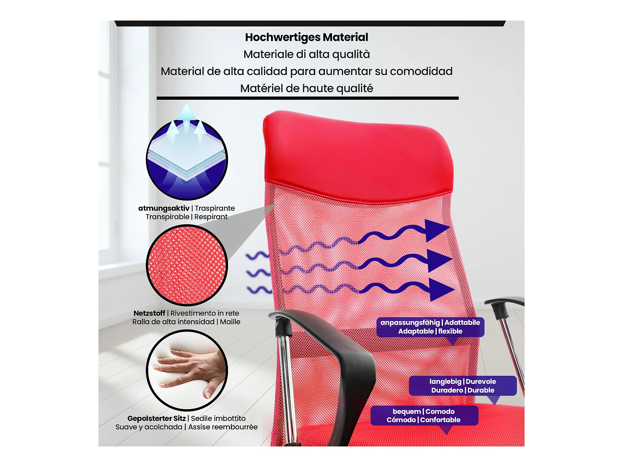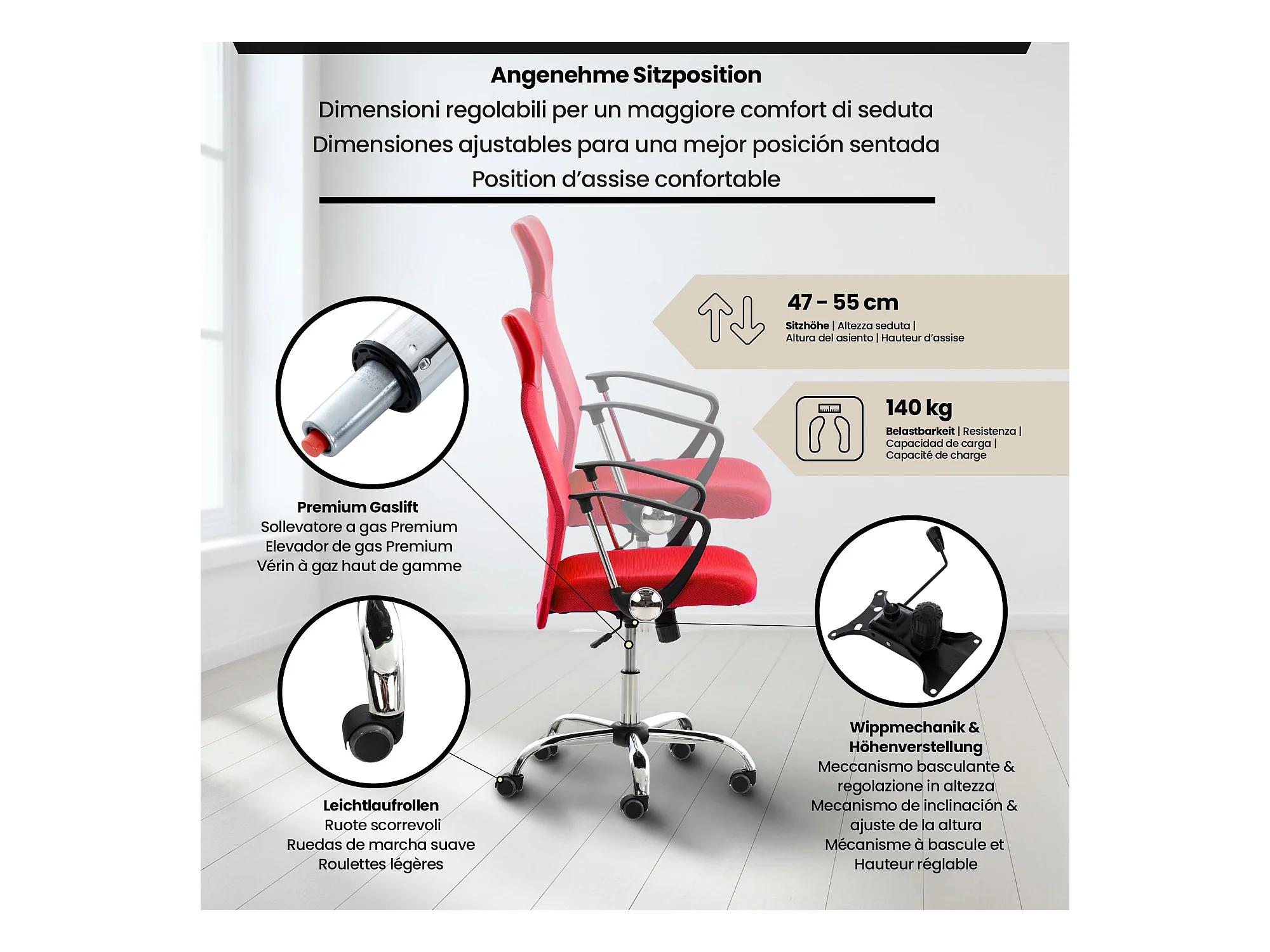 Chaise de bureau - Similicuir & Métal chromé - Rouge - Washington
