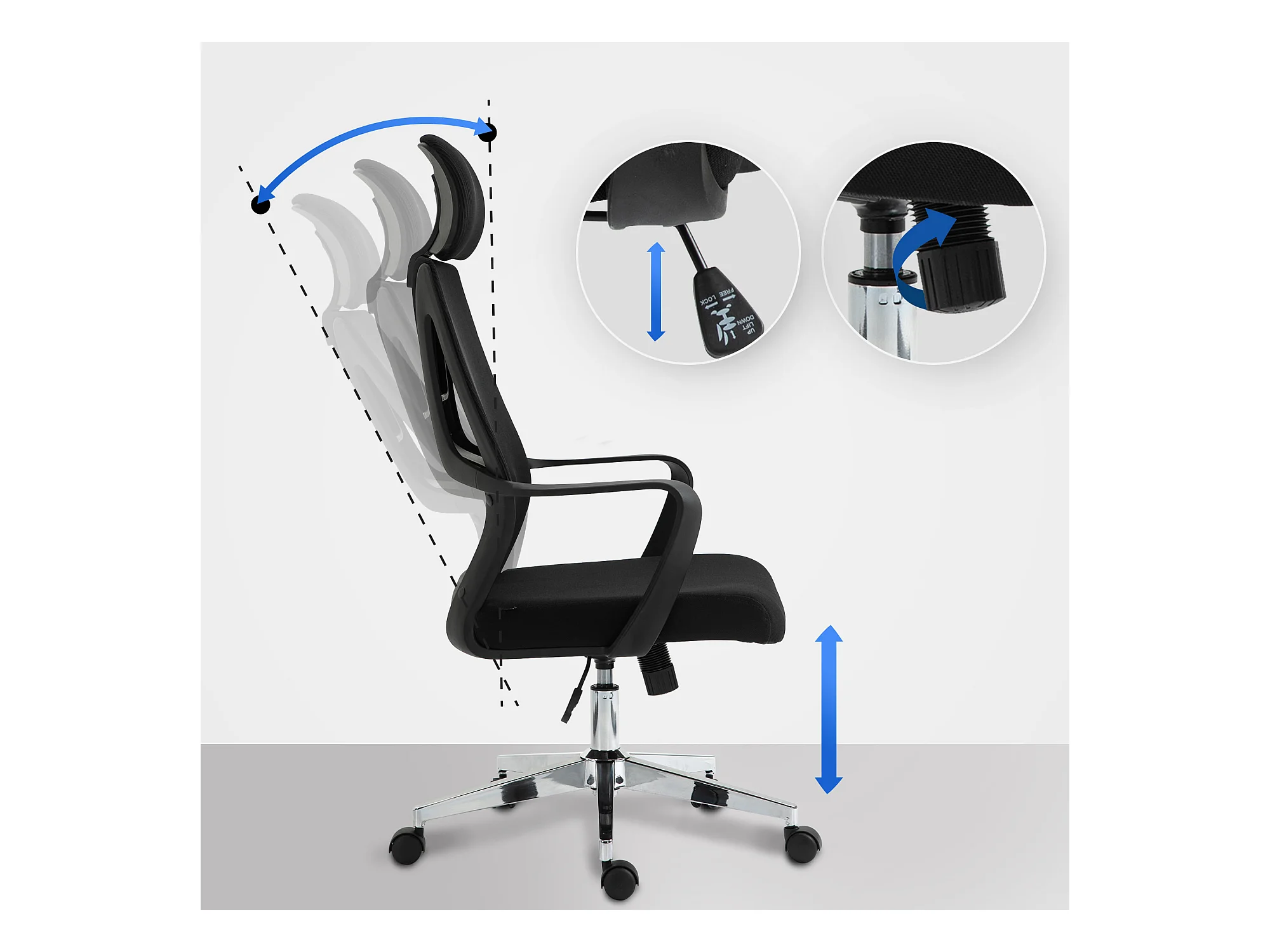 Chaise de bureau - Tissu & Métal chromé - Noir - Pacific