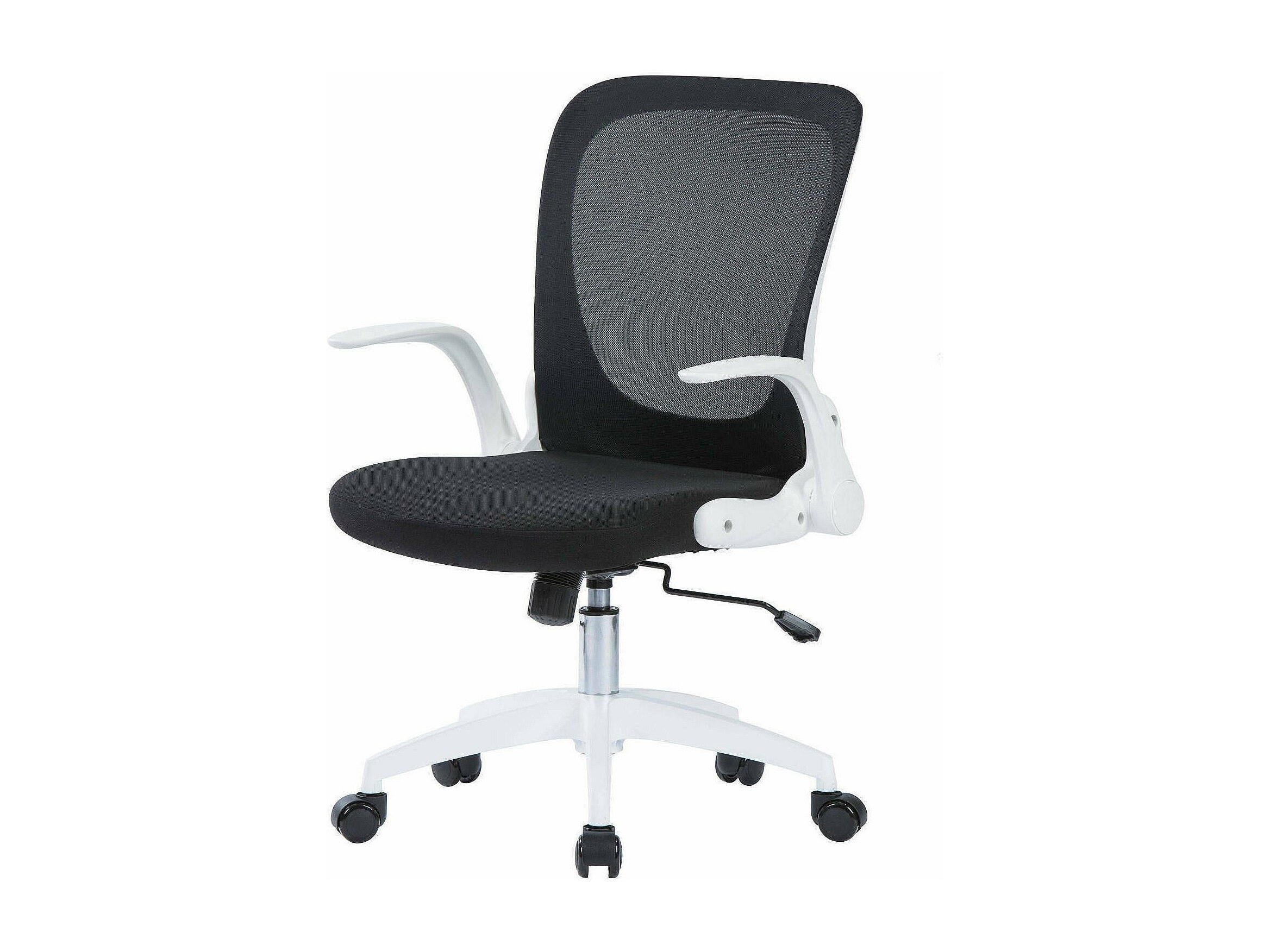 Chaise de bureau Wellington, Chaise de direction en maille avec accoudoirs, Siège ergonomique avec accoudoirs rabattables, 60x59h86/96 cm, Noir et Blanc