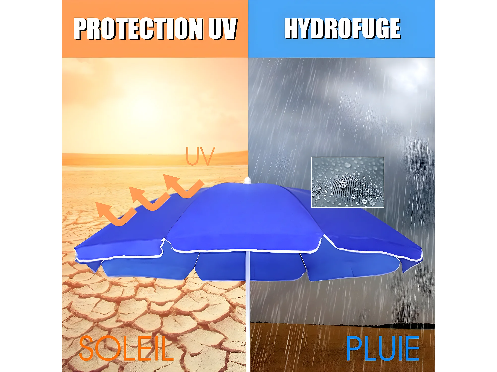 Chaise de CamBoisg Pliante 2 Places en PVC avec Poche Isotherme,Porte-gobelet, Parasol, Accoudoirs Rembourré Portable 113 KG pour Randonnée, Plage, Pêche Bleu