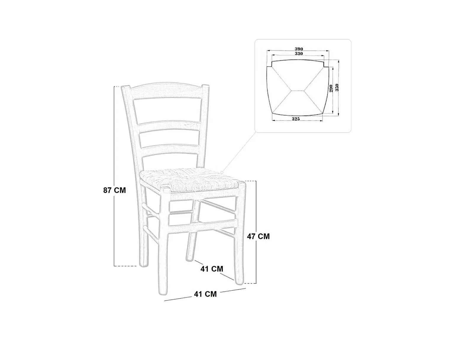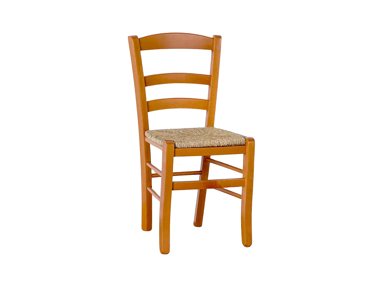 Chaise Venice en bois massif avec assise en paille de riz teintée noyer foncé