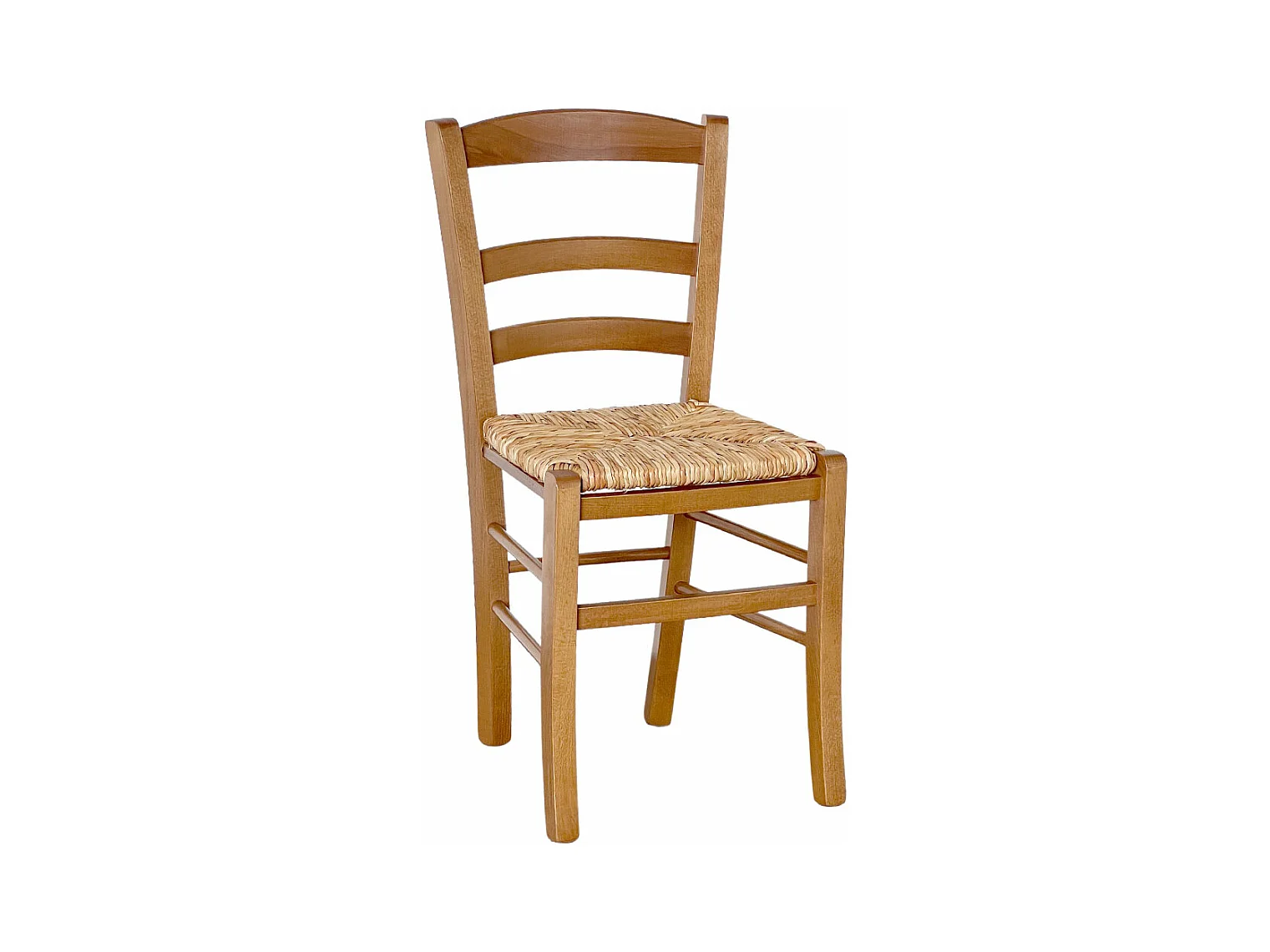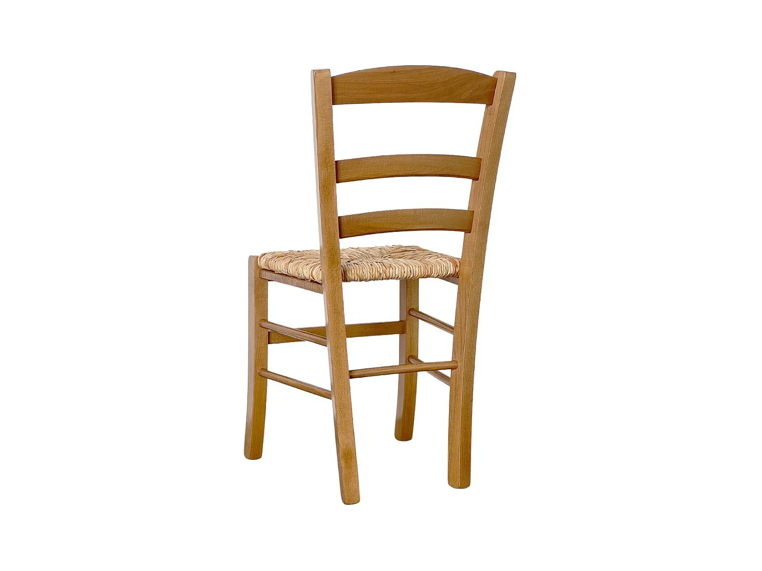 Chaise vénitienne ancienne en bois blanc avec assise en paille des marais