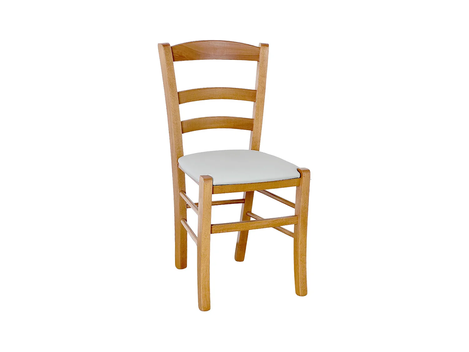 Chaise Loris en bois naturel avec assise tapissée en simili cuir beige
