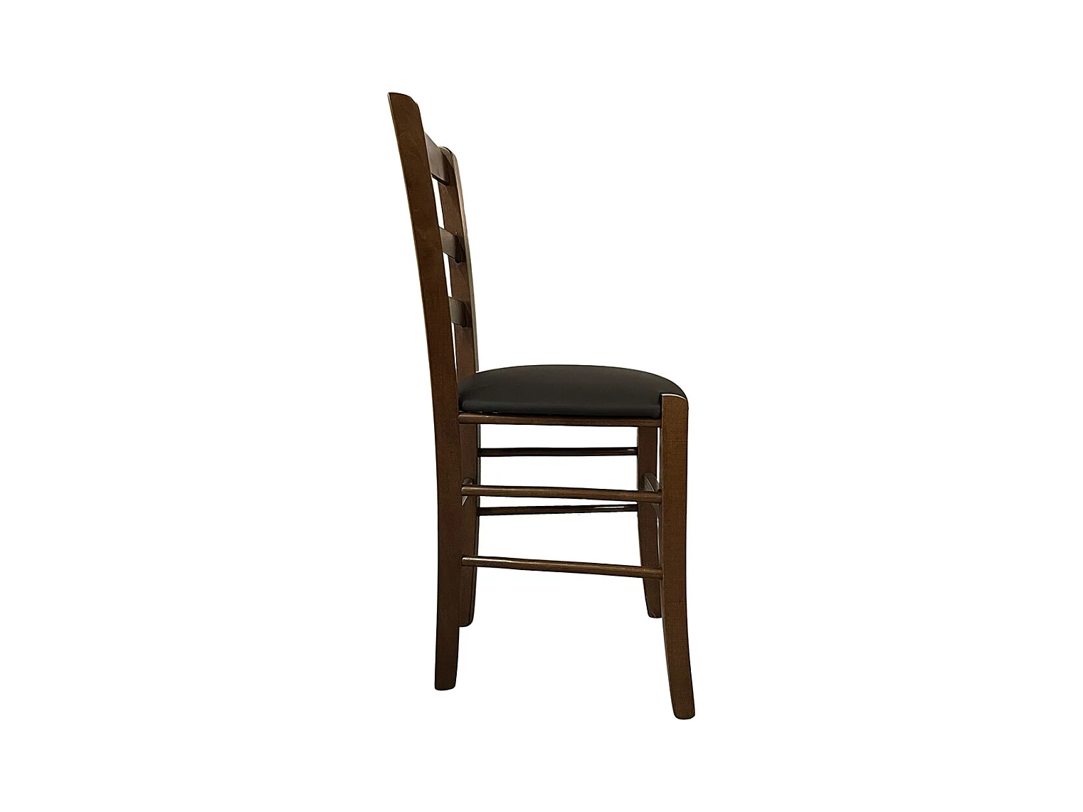 Chaise en bois de Venise couleur cerisier avec assise en similicuir rembourré beige