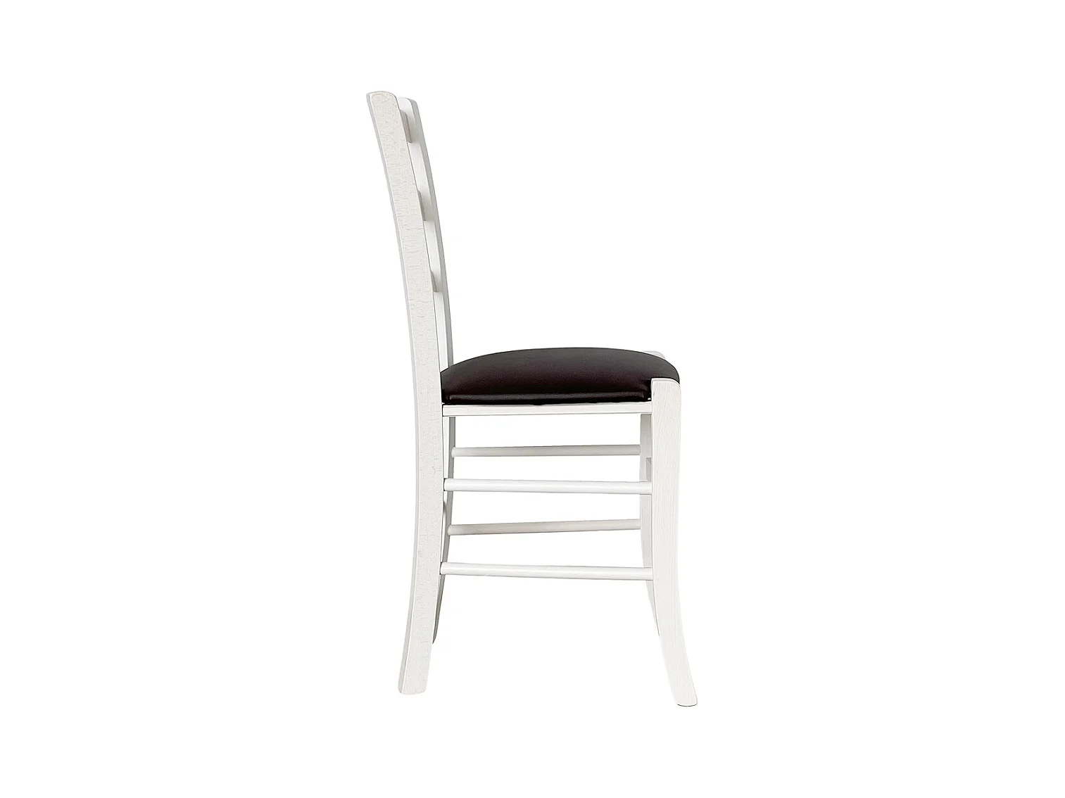 Chaise Venezia Paesana en bois blanc avec assise en simili cuir anthracite