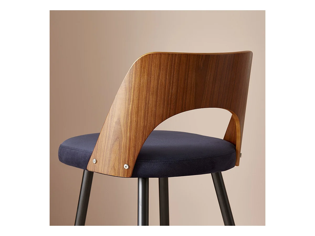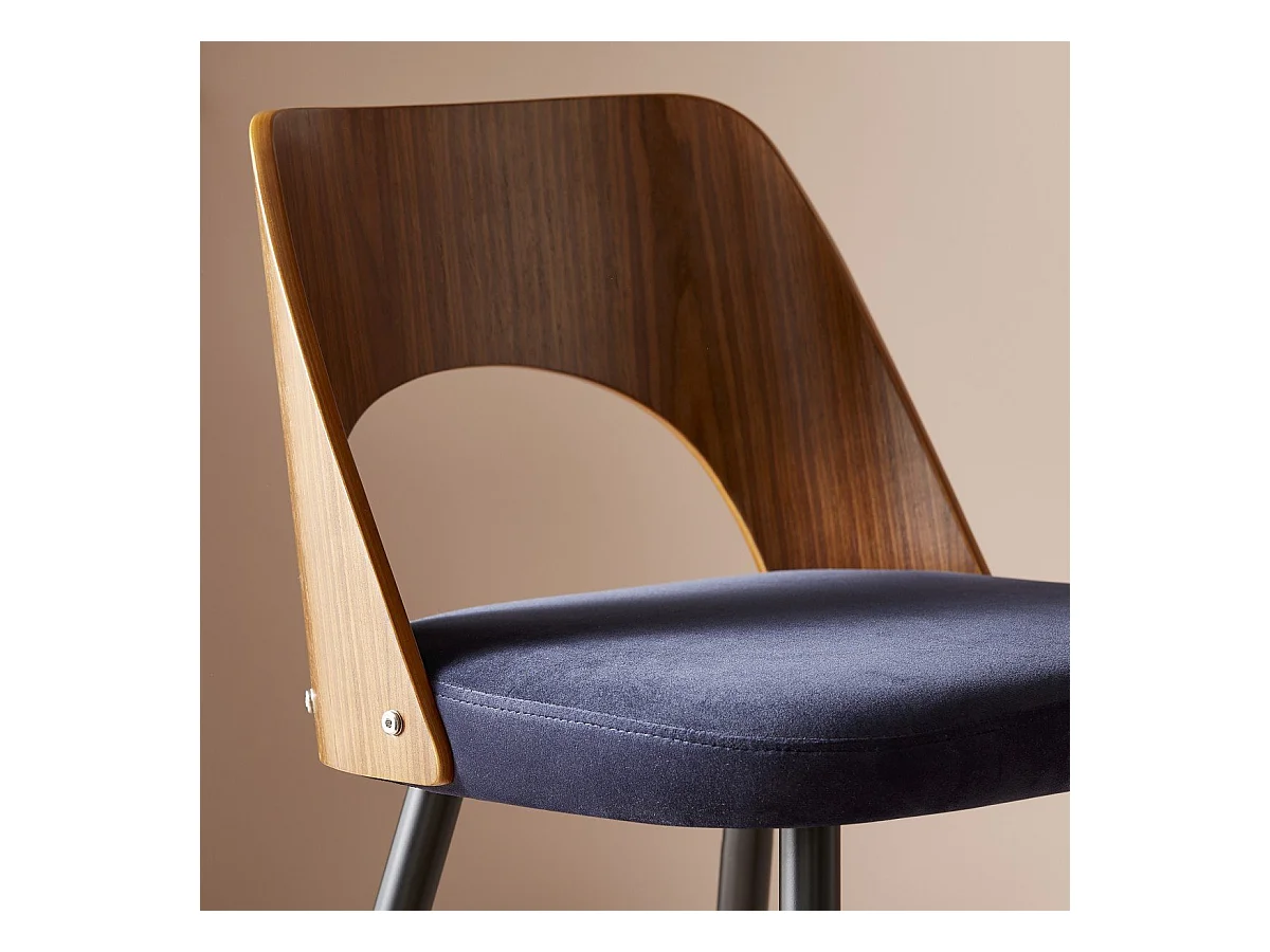 Chaise de comptoir en velours bleu L45 cm - AUSTIN