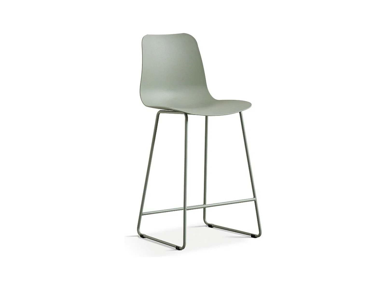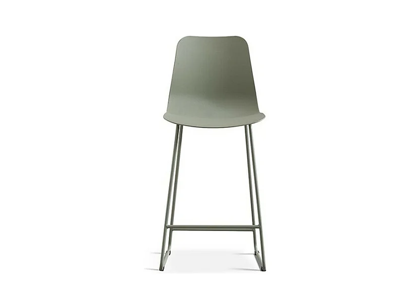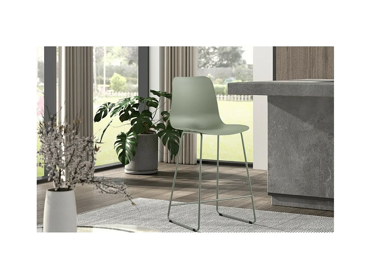 Chaise de comptoir MARIO – PP gris-vert – Pieds en métal – Hauteur 100,5 cm – Style moderne
