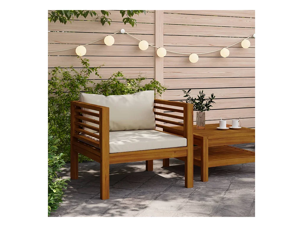 Chaise de jardin avec coussins blanc crème Bois d'acacia massif FR76429