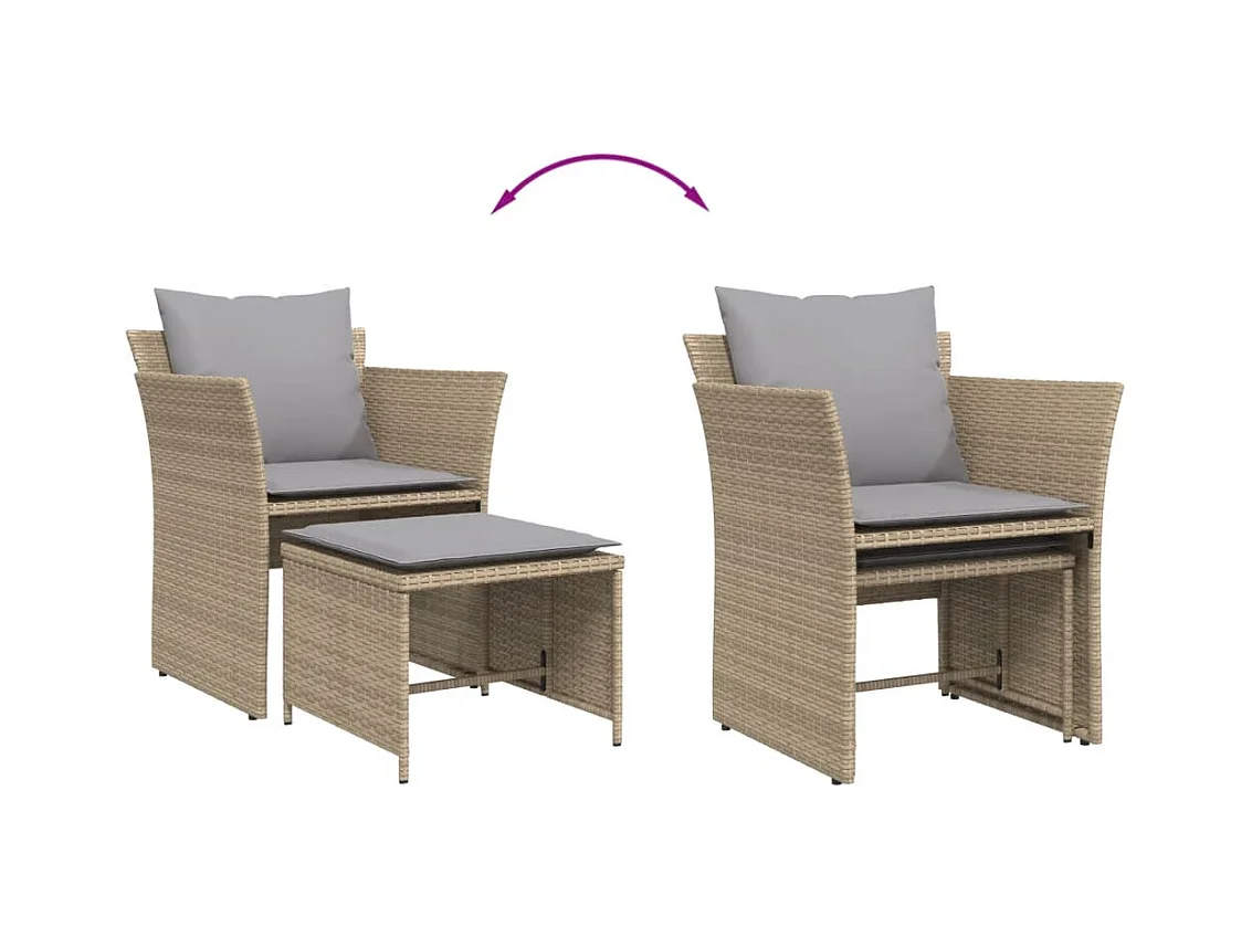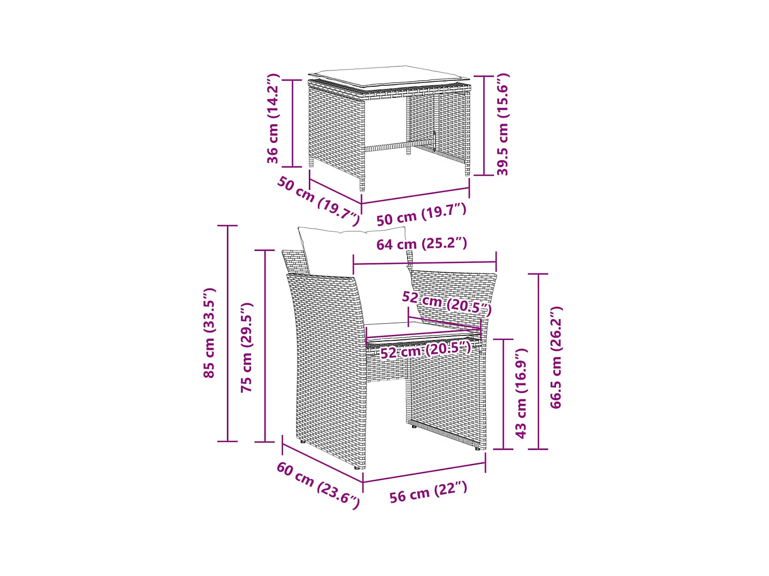 Ensemble à manger de jardin et coussins 5pcs beige rotin acacia