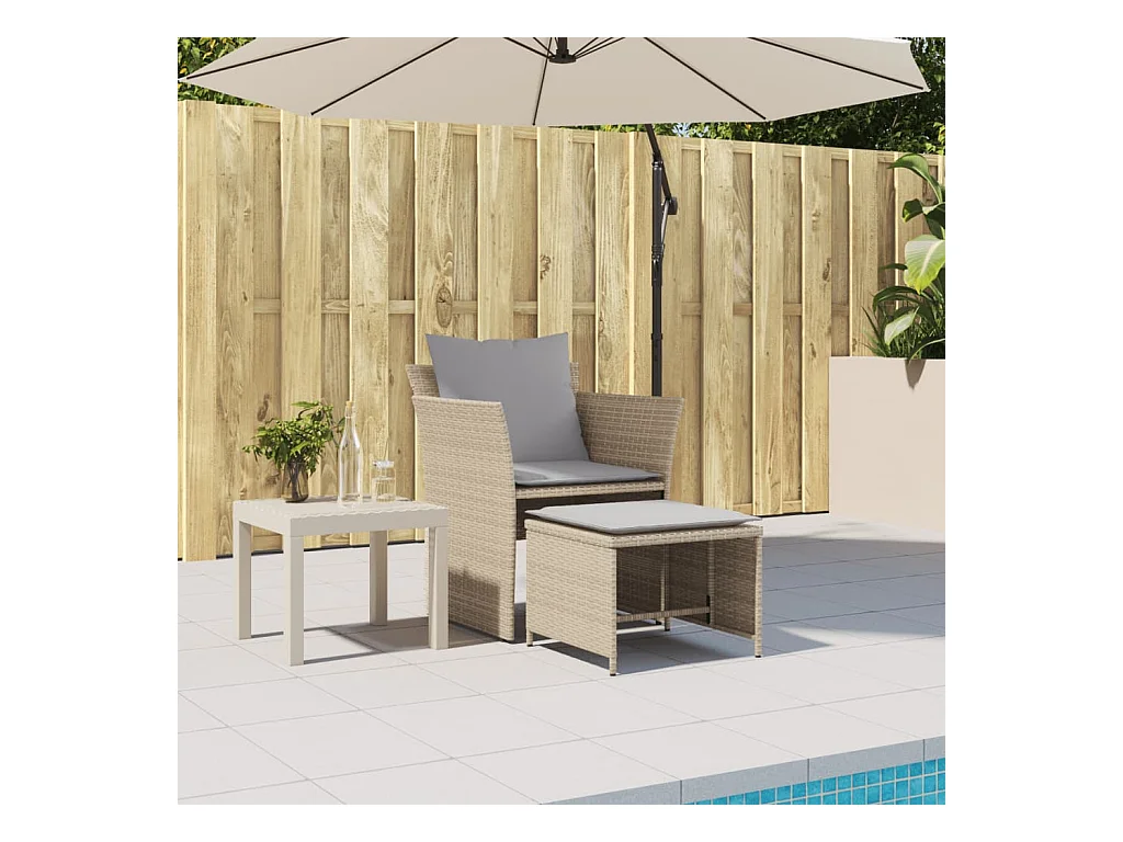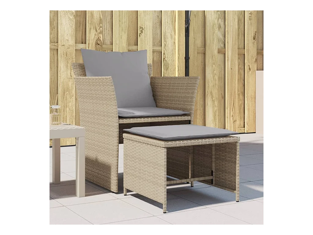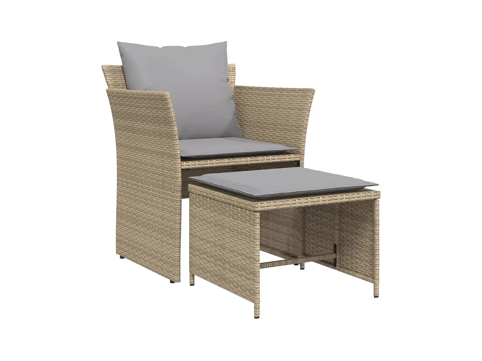 Chaise de jardin avec tabouret beige résine tressée FR34539